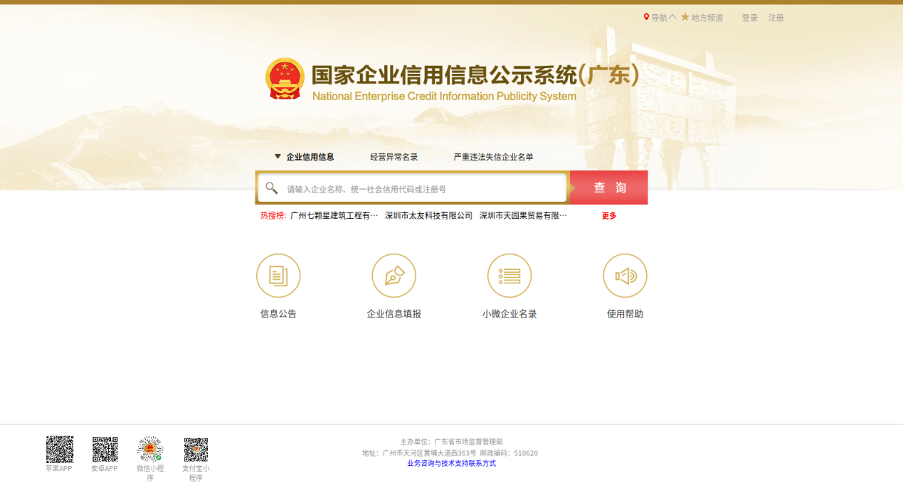 第1步:打開國(guó)家企業(yè)信用信息公示系統(tǒng)(廣東)(網(wǎng)址:http://gd.gsxt.gov.cn/),然后點(diǎn)擊“企業(yè)信息填報(bào)”。