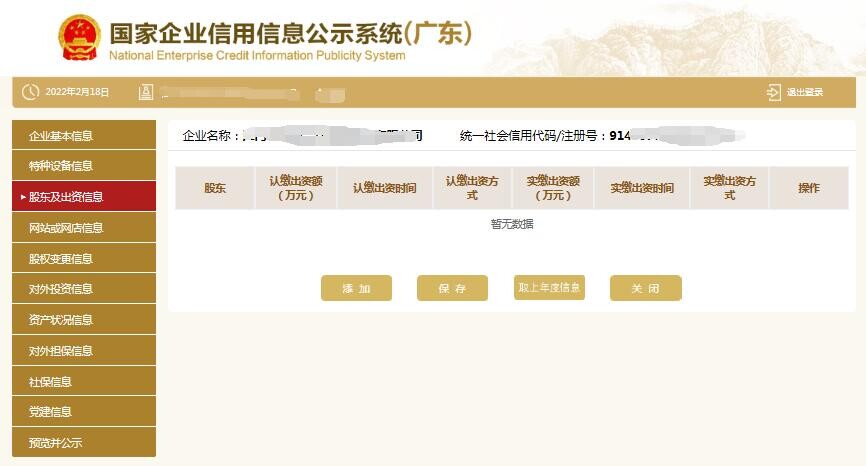 在這里可以添加股東和出資信息。填寫完點(diǎn)擊“保存”。