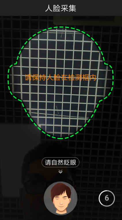 3.進(jìn)入資格認(rèn)證后,請(qǐng)將臉對(duì)準(zhǔn)頭像框,盡量使臉完全納入頭像框,根據(jù)語(yǔ)音提示和下圖中人的動(dòng)作,完成人臉檢測(cè)。
