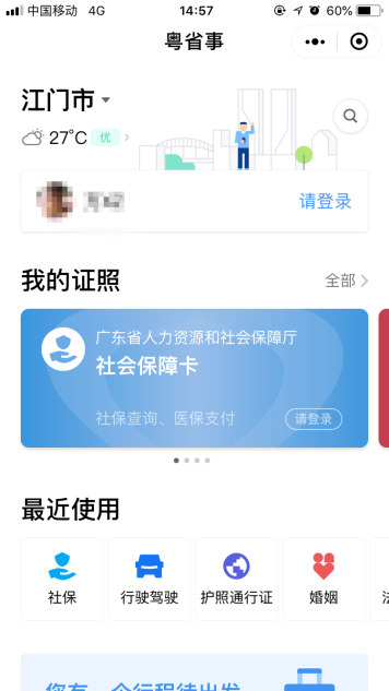 一、通過微信搜索“粵省事”,找到小程序并點(diǎn)擊進(jìn)入主界面。點(diǎn)擊“社?!睓谀?,進(jìn)入相應(yīng)的界面,可以看到“醫(yī)療保險(xiǎn)”、“養(yǎng)老保險(xiǎn)”等情況,如果沒有登錄的則需要先實(shí)名制登錄進(jìn)去才能查看。