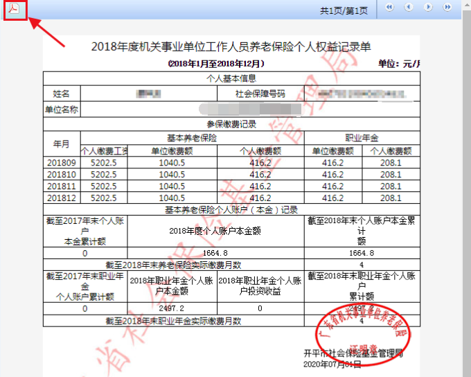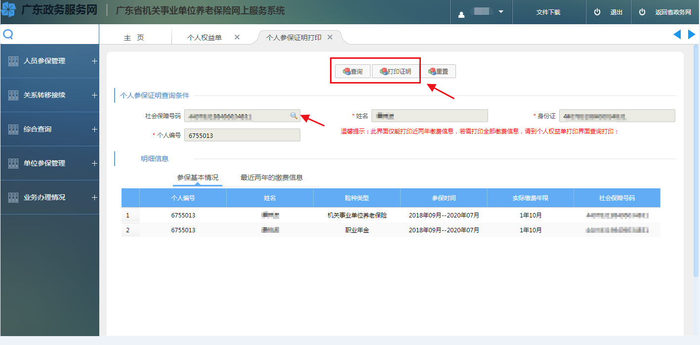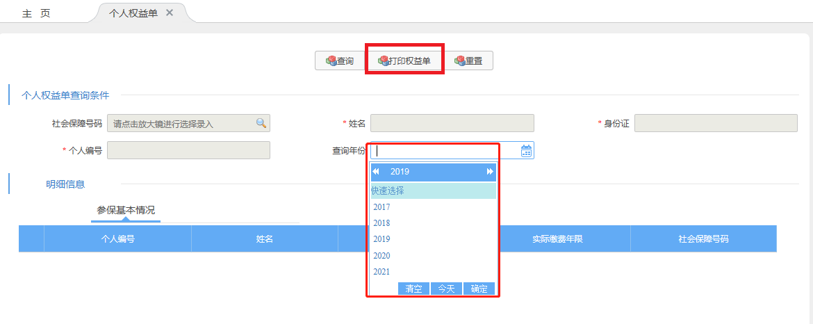 查詢打印路徑:綜合查詢→個人權(quán)益單→社保號查詢→輸入查詢年份→導(dǎo)出打印