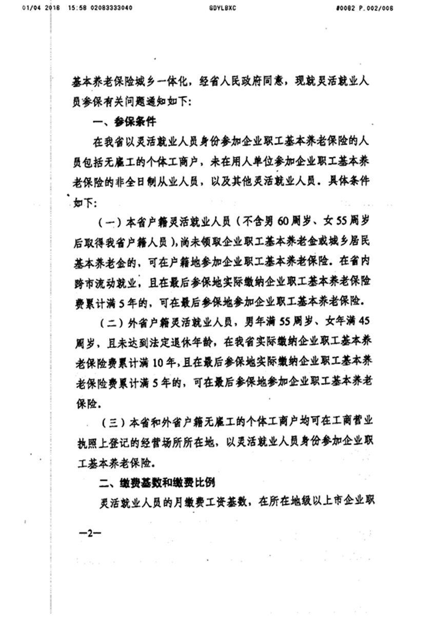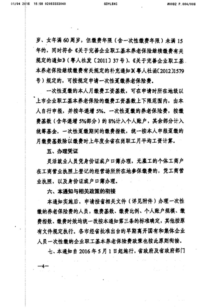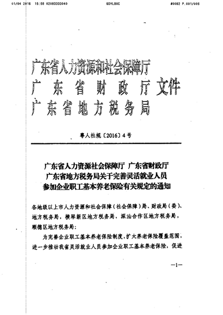 粵人社規(guī)[2016]4號 關(guān)于完善靈活就業(yè)人員參加企業(yè)職工基本養(yǎng)老保險有關(guān)規(guī)定的通知