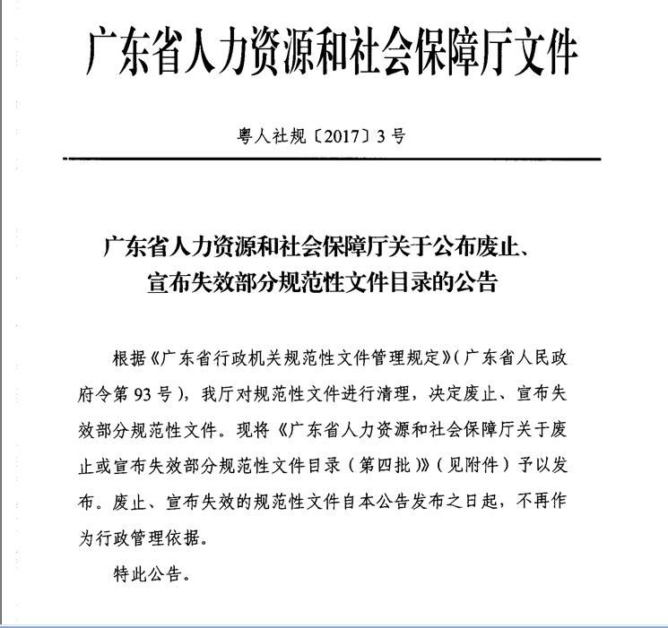 粵人社規(guī)[2017]3號 省人社廳關于公布廢止、宣布失效部分規(guī)范性文件目錄的公告