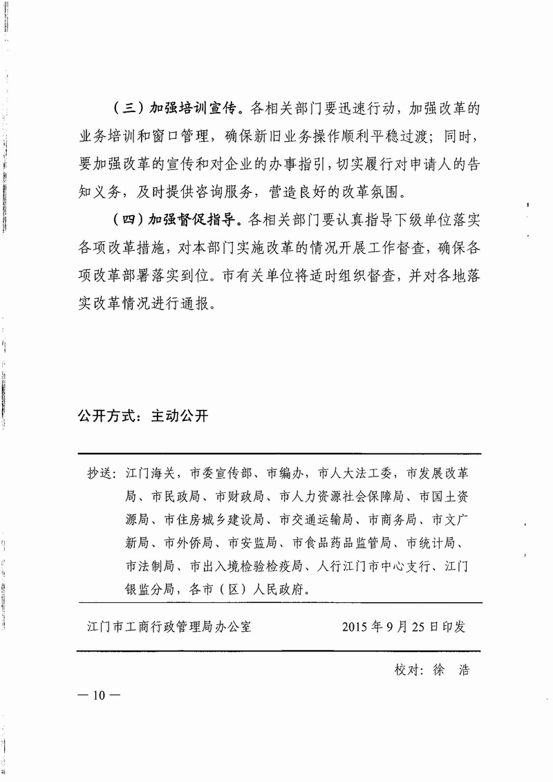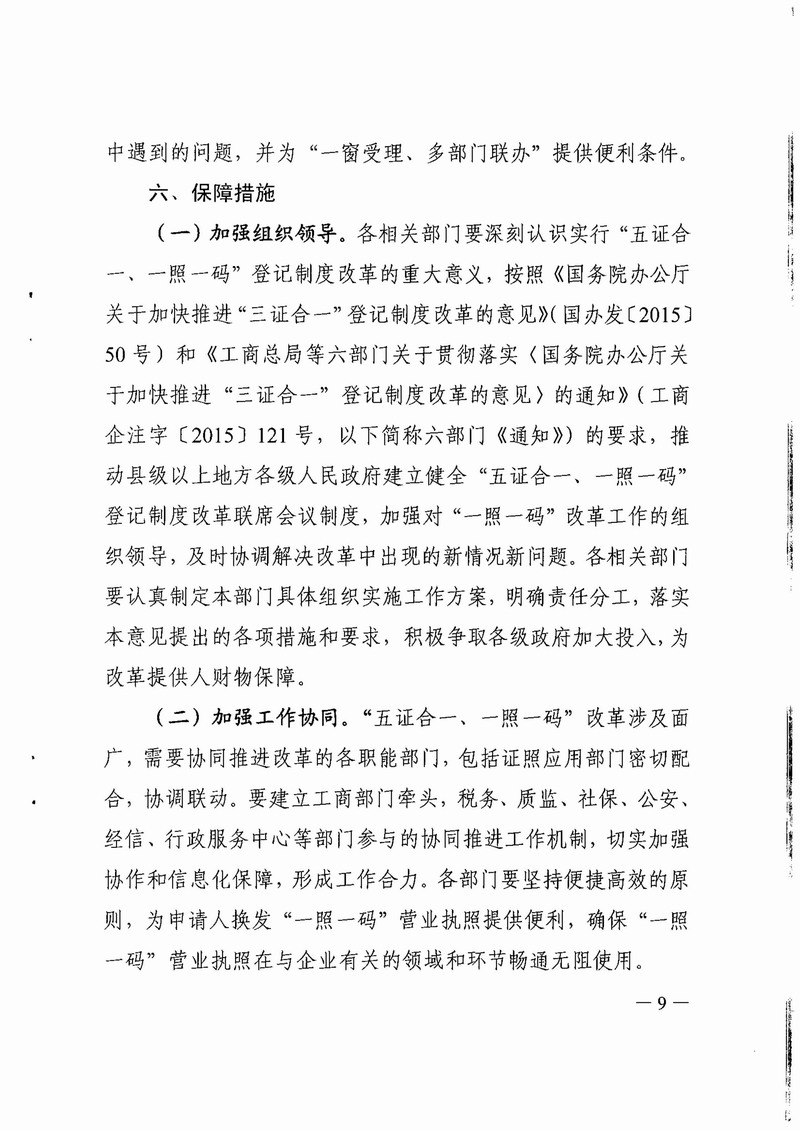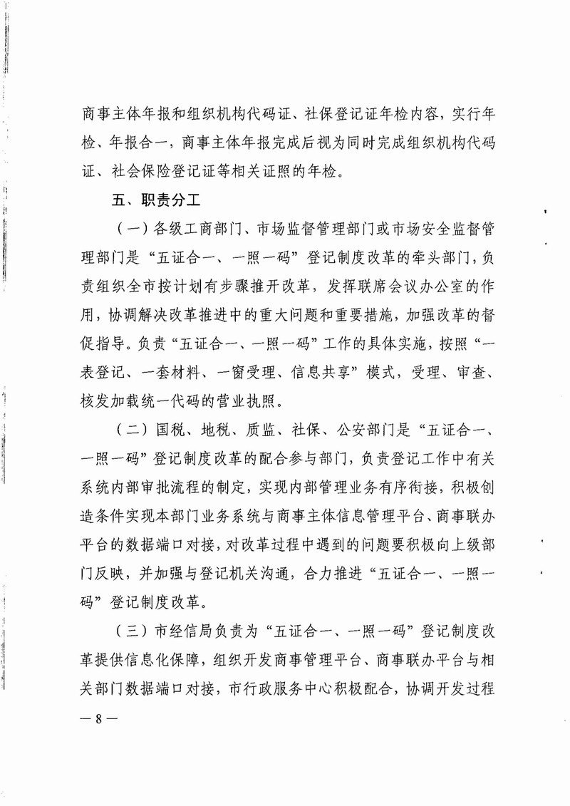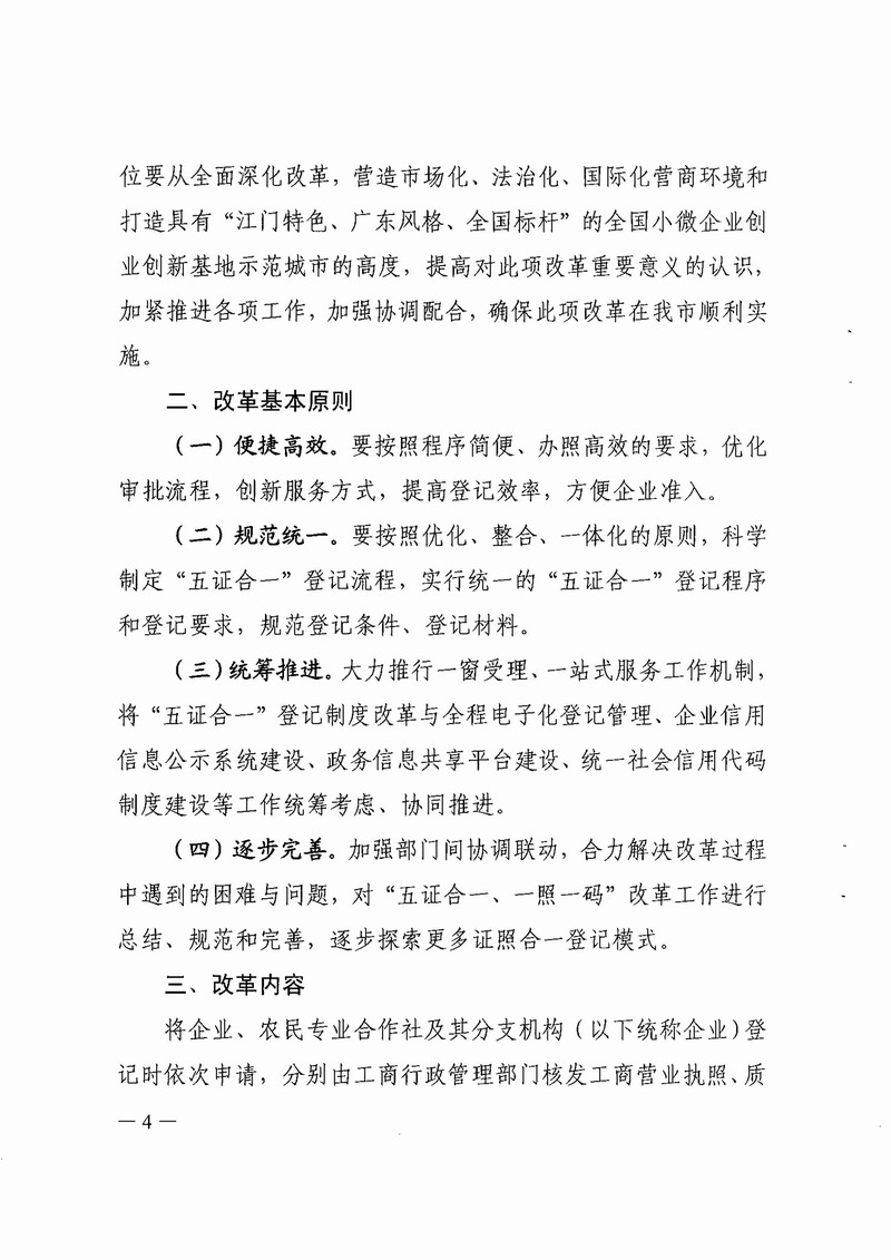 江門市工商局等八部門關(guān)于印發(fā)江門市全面推行“五證合一、一照一碼”登記制度改革的實施意見(試行)的通知