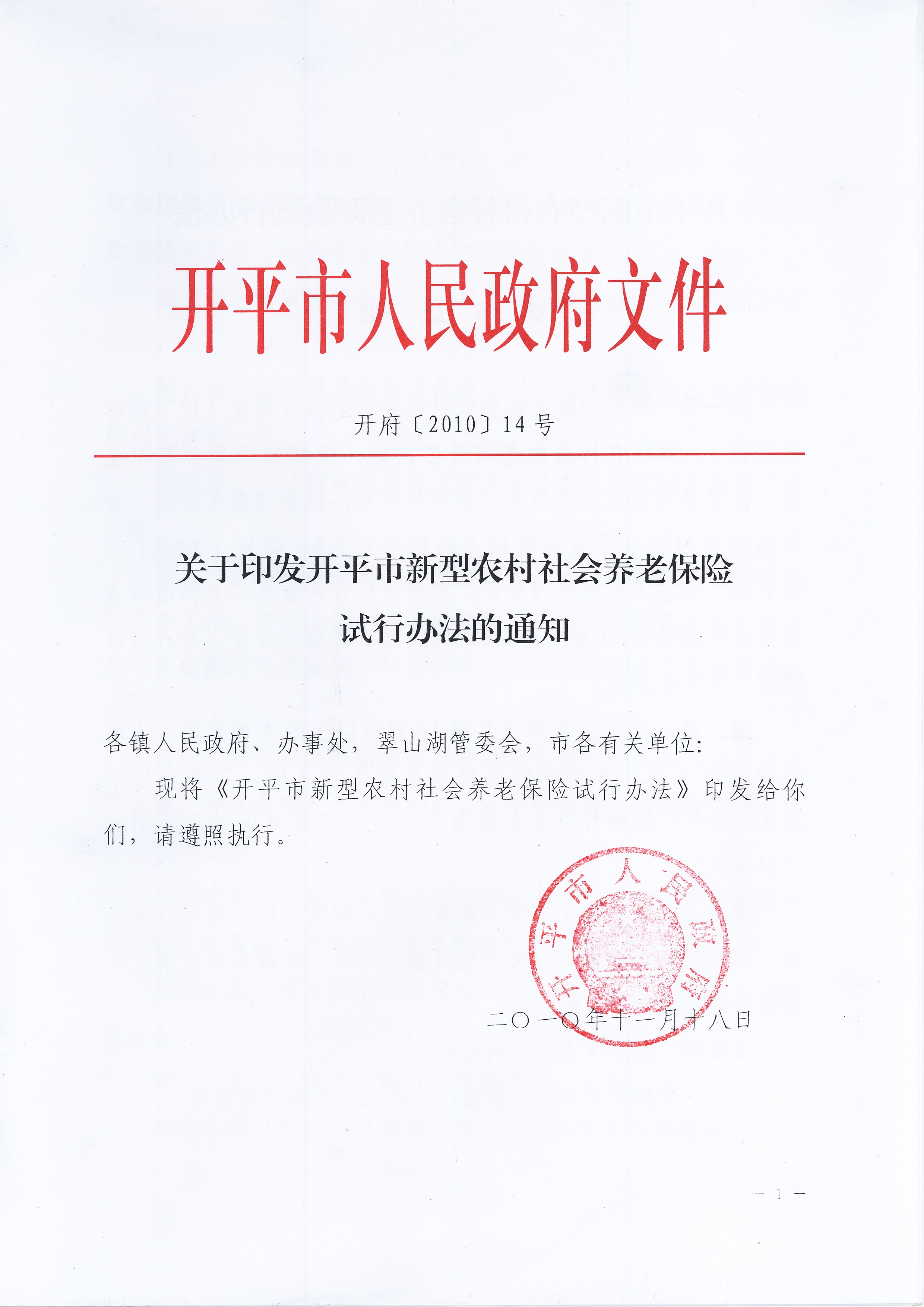 開平市新型農(nóng)村社會(huì)養(yǎng)老保險(xiǎn)試行辦法