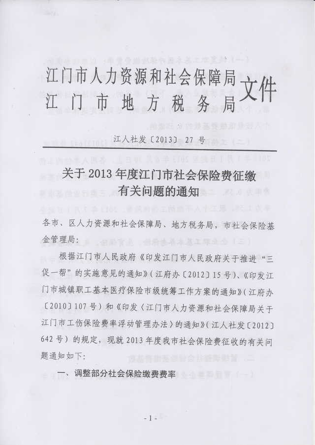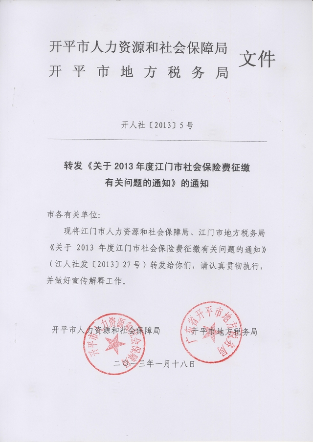 轉(zhuǎn)發(fā)《關(guān)于2013年度江門市社會(huì)保險(xiǎn)費(fèi)征繳有關(guān)問(wèn)題的通知》的通知