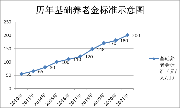 基礎(chǔ)養(yǎng)老金自2021年9月1日起調(diào)整為每人每月200元。