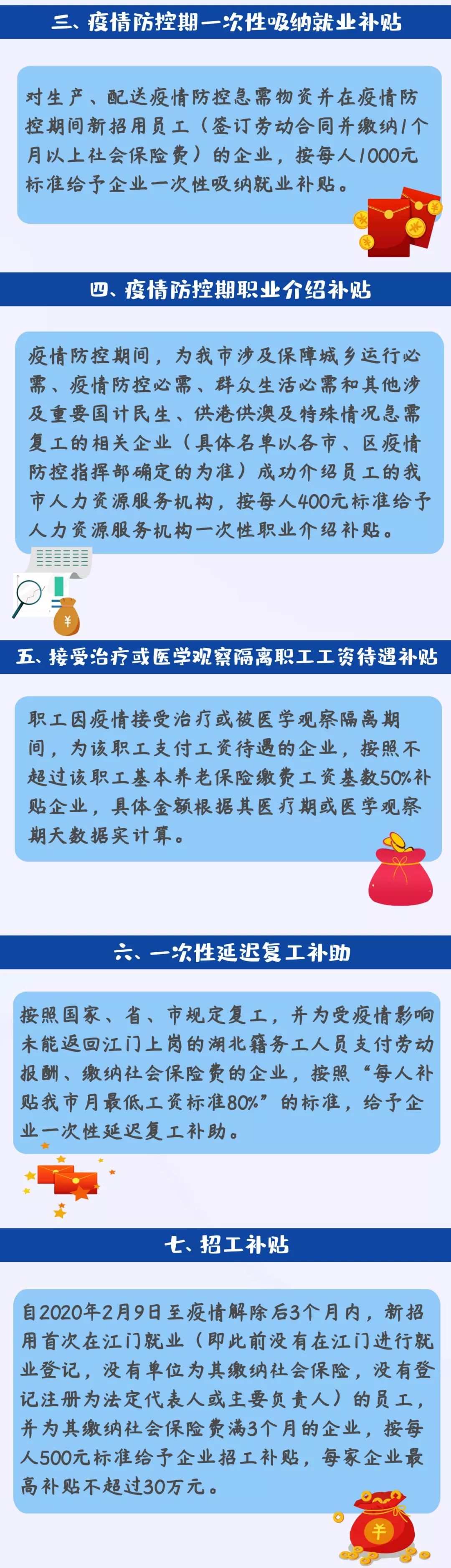 江門市人力資源社會保障局推出“支持企業(yè)復工復產(chǎn)補貼專區(qū)”短短一周時間以來,得到全市廣大企業(yè)的青睞,已有423家企業(yè)陸續(xù)申請了有關補貼。為加快推進我市企業(yè)復工復產(chǎn)優(yōu)惠政策落地見效,市人社局馬不停蹄又上線了包括“一次性延長復工補助”、“疫情防控期一次性吸納就業(yè)補貼”、“企業(yè)職工適崗培訓補貼”等6項新補貼,補貼項目均實現(xiàn)了“申領-審批-發(fā)放”全流程“零跑腿”。
