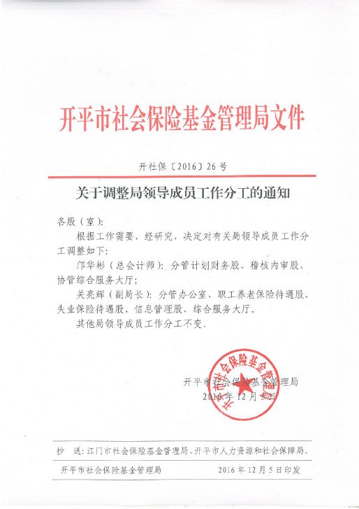 關(guān)于調(diào)整局領(lǐng)導(dǎo)成員工作分工的通知