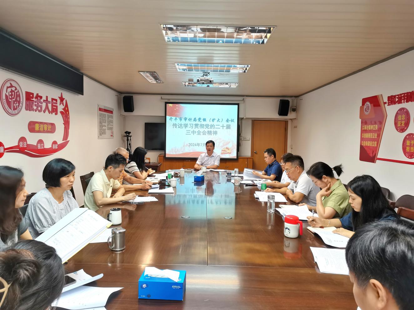 7月26日,市審計(jì)局召開(kāi)黨組(擴(kuò)大)會(huì)議,專題傳達(dá)學(xué)習(xí)貫徹黨的二十屆三中全會(huì)精神,以及省、江門市和我市有關(guān)會(huì)議精神,對(duì)學(xué)習(xí)宣傳貫徹工作進(jìn)行全面部署。局黨組書記、局長(zhǎng)方根倫主持會(huì)議并講話,局領(lǐng)導(dǎo)和局股級(jí)干部參加會(huì)議。