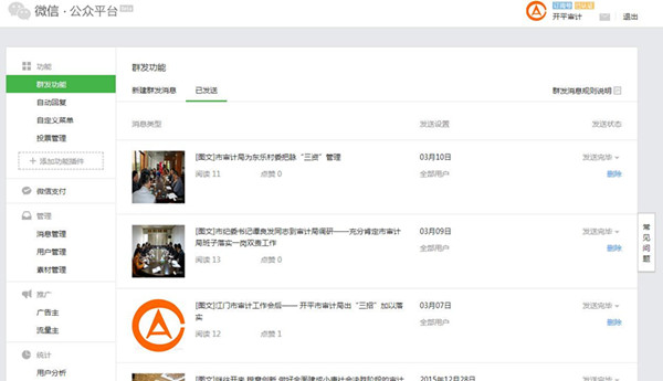 “開平審計(jì)”微信公眾號(hào)共發(fā)布微信12條。