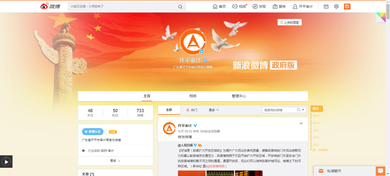 “開平審計”官方微博共發(fā)布微博200條。
