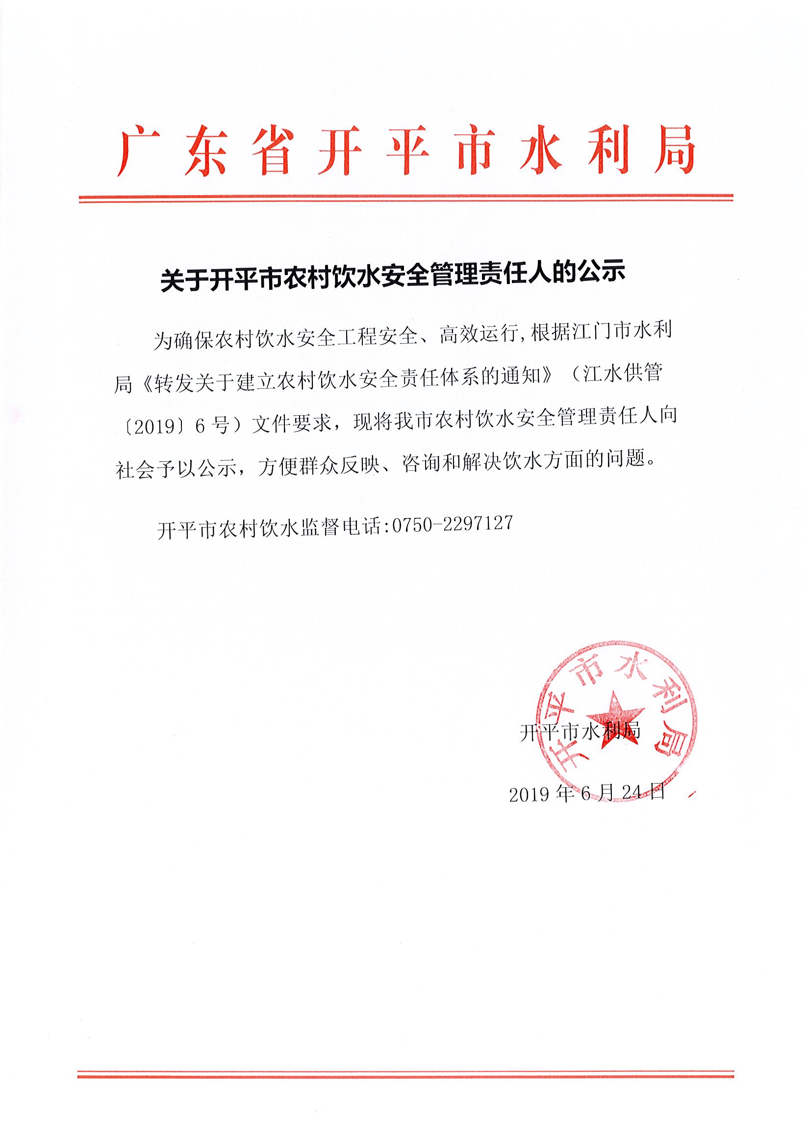 關于開平市農(nóng)村飲水安全管理責任人的公示