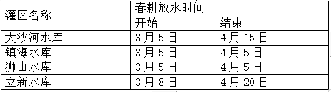 為了做好今年我市農(nóng)田春耕用水工作,科學(xué)進行水庫用水調(diào)度,2020年我市大中型水庫灌區(qū)農(nóng)田春耕放水和結(jié)束時間定于:
