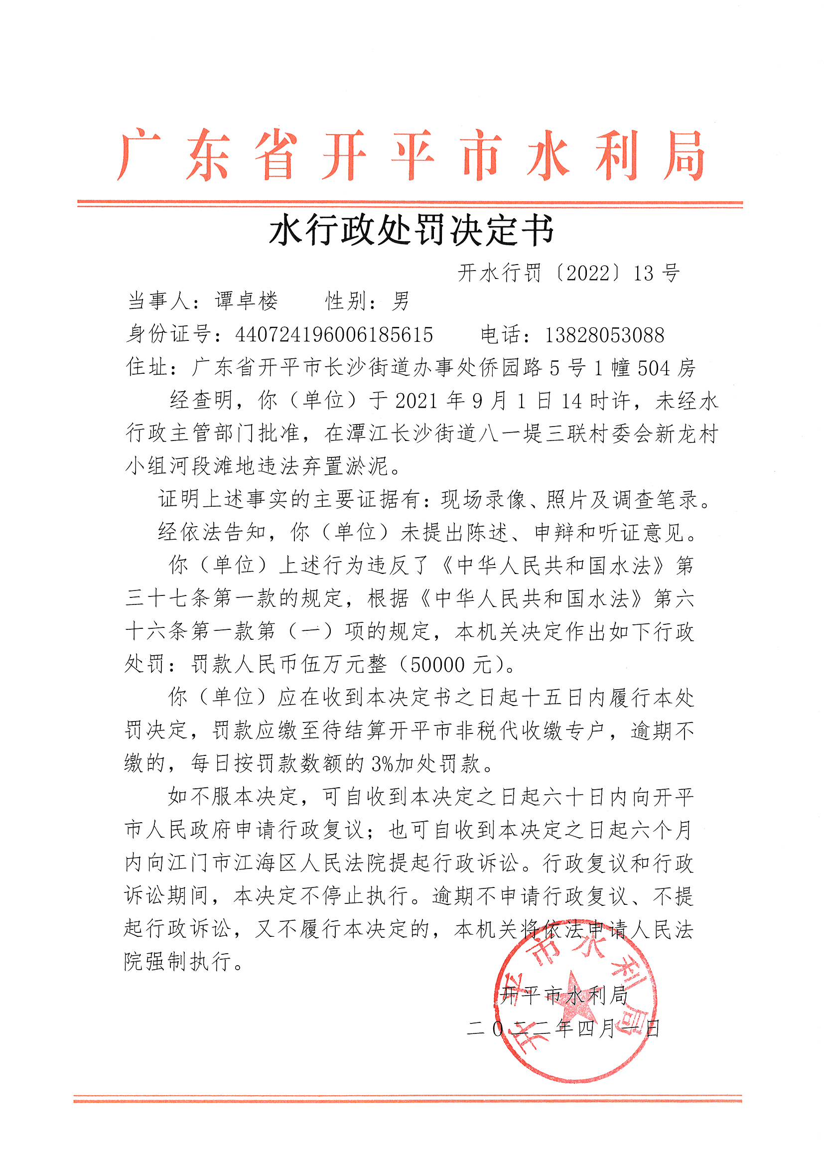如不服本決定,可自收到本決定之日起六十日內(nèi)向開平市人民政府申請行政復議;也可自收到本決定之日起六個月內(nèi)向江門市江海區(qū)人民法院提起行政訴訟。行政復議和行政訴訟期間,本決定不停止執(zhí)行。逾期不申請行政復議、不提起行政訴訟,又不履行本決定的,本機關將依法申請人民法院強制執(zhí)行。