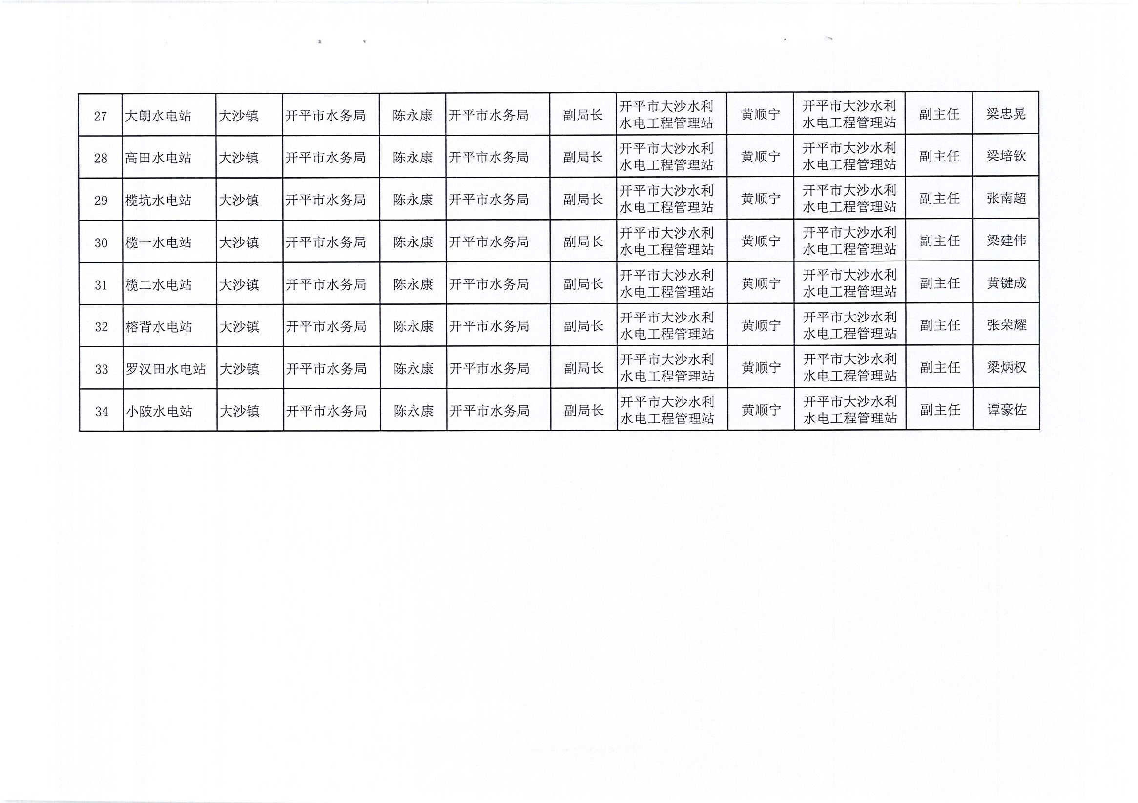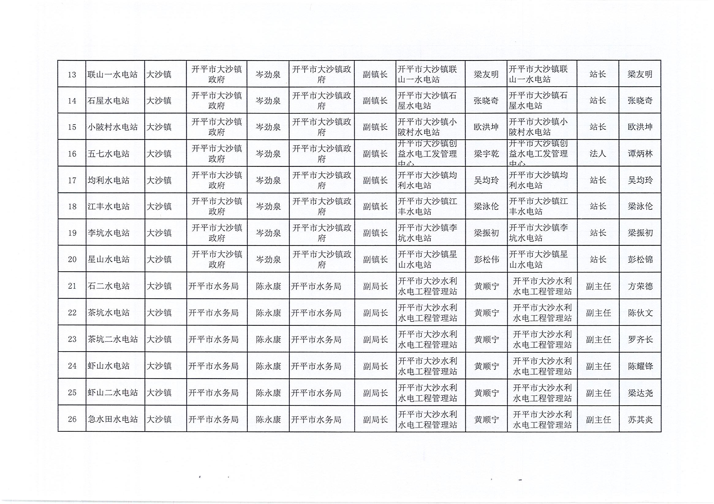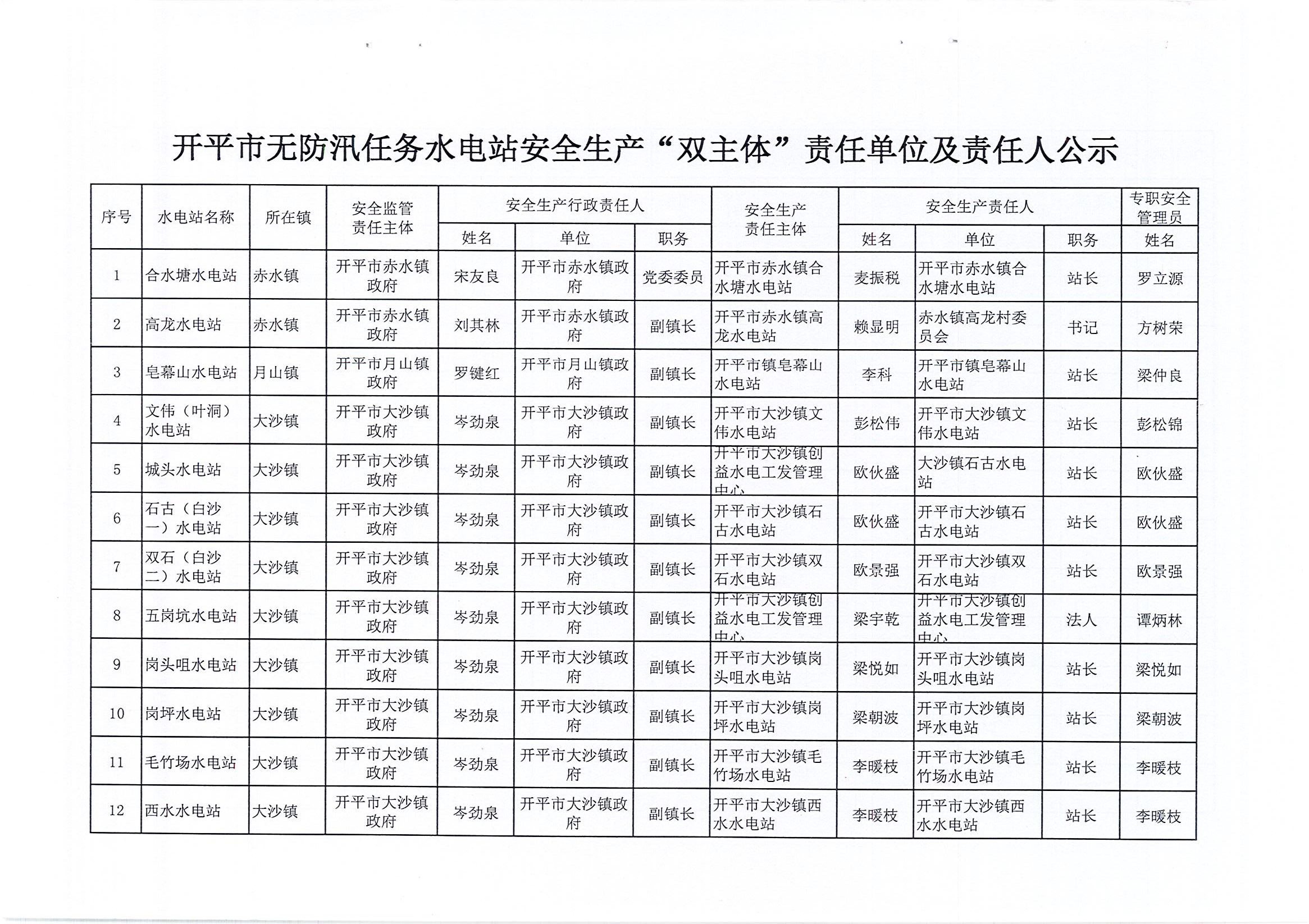 開平市無防汛任務(wù)水電站安全生產(chǎn)“雙主體”責(zé)任單位及責(zé)任人公示