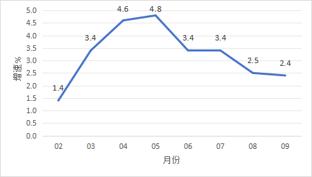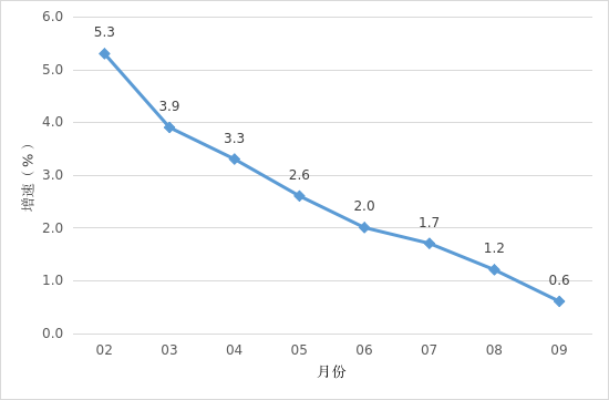 2024年前三季度開平市經(jīng)濟(jì)運(yùn)行簡況 前三季度,全市主要經(jīng)濟(jì)指標(biāo)運(yùn)行簡況如下: 一、地區(qū)生產(chǎn)總值 根據(jù)江門市地區(qū)生產(chǎn)總值統(tǒng)一核算結(jié)果,前三季度,開平市實(shí)現(xiàn)地區(qū)生產(chǎn)總值345.29億元,同比增長2.1%。其中,第一產(chǎn)業(yè)增加值41.99億元,同比增長4.9%;第二產(chǎn)業(yè)增加值158.17億元,增長3.7%;第三產(chǎn)業(yè)增加值145.13億元,下降0.4%。 二、農(nóng)林牧漁業(yè) 前三季度,全市實(shí)現(xiàn)農(nóng)林牧漁業(yè)總產(chǎn)值81.11億元,同比增長5.2%。其中,農(nóng)業(yè)產(chǎn)值25.79億元,同比增長4.6%;林業(yè)產(chǎn)值2.48億元,增長8.3%;牧業(yè)產(chǎn)值37.26億元,增長5.4%;漁業(yè)產(chǎn)值8.68億元,增長3.0%;農(nóng)林牧漁專業(yè)及輔助性活動產(chǎn)值6.90億元,增長10.1%。 三、工業(yè)生產(chǎn) 前三季度,開平規(guī)模以上工業(yè)企業(yè)累計(jì)完成工業(yè)增加值97.24億元,同比增長2.4%。 分經(jīng)濟(jì)類型看,股份制企業(yè)增長9.1%;外商及港澳臺商投資企業(yè)下降3.5%;私營企業(yè)增長4.2%。分門類看,采礦業(yè)增加值下降34.7%,制造業(yè)增加值增長0.7%,電力、熱力、燃?xì)饧八a(chǎn)和供應(yīng)業(yè)增加值增長142.7%。 前三季度全市工業(yè)用電量增長6.9%。 圖一 2024年2月以來開平市規(guī)模以上工業(yè)增加值增速 四、投資 前三季度,全市完成固定資產(chǎn)投資同比增長2.4%。分經(jīng)濟(jì)類型看,國有投資下降23.7%;民間投資下降2.5%。分產(chǎn)業(yè)看,第一產(chǎn)業(yè)投資下降48.8%;第二產(chǎn)業(yè)投資增長5.0%,其中工業(yè)投資增長5.0%;第三產(chǎn)業(yè)投資增長0.9%,其中房地產(chǎn)投資下降13.9%。 五、消費(fèi)市場 前三季度,我市完成社會消費(fèi)品零售總額141.13億元,同比增長0.6%。 圖二 2024年2月以來開平市社會消費(fèi)品零售總額增速 六、財(cái)政收入 前三季度,全市實(shí)現(xiàn)地方一般公共預(yù)算收入21.26億元,同比下降2.6%,其中稅收收入10.49億元,同比下降9.4%。 七、金融市場 9月末,全市金融機(jī)構(gòu)本外幣各項(xiàng)存款余額1012.48億元,同比增長8.3%;本外幣各項(xiàng)貸款余額706.68億元,同比增長7.0%。