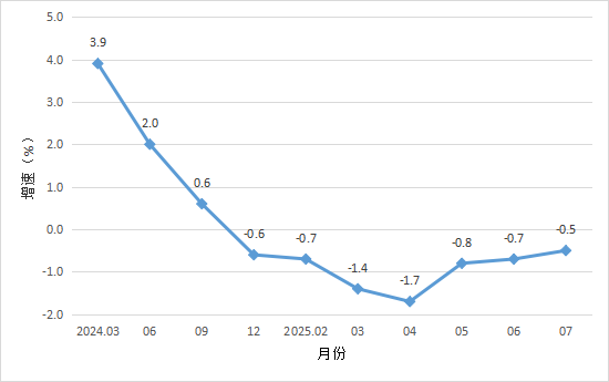 2024年3月以來開平市規(guī)模以上工業(yè)增加值增速 二、投資 1-7月,全市固定資產(chǎn)完成投資同比下降26.6%。分經(jīng)濟(jì)類型看,國有投資下降8.7%;港澳臺(tái)和外商投資增長13.8%;民間投資下降25.8%。 三、消費(fèi)市場 1-7月,我市完成社會(huì)消費(fèi)品零售總額97.25億元,同比下降0.5%。 圖2