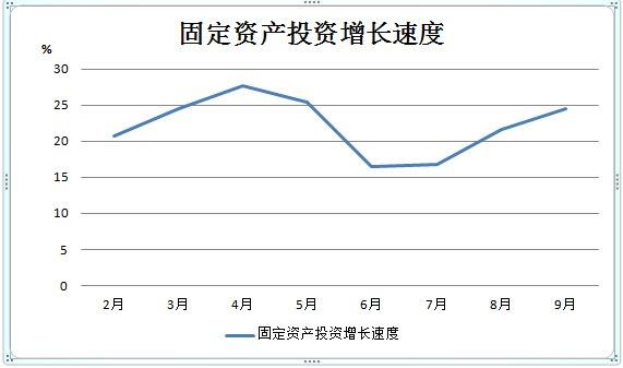 我市投資在二產(chǎn)以翠山湖科技產(chǎn)業(yè)園、三產(chǎn)以房地產(chǎn)為首的穩(wěn)定發(fā)展帶動下,2015年以來一直保持兩位數(shù)增長,1—9月份,累計完成固定資產(chǎn)投資133.10億元,同比增長24.53%,與8月份環(huán)比增長2.88個百分點。