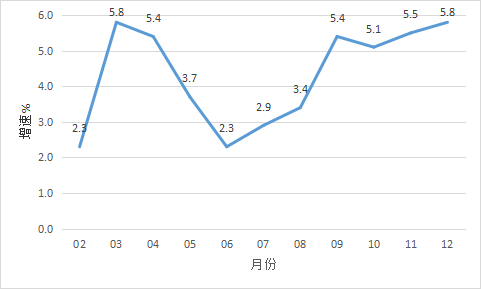 2023年開平市經(jīng)濟(jì)運(yùn)行簡況 2023年,全市主要經(jīng)濟(jì)指標(biāo)運(yùn)行簡況如下: 一、地區(qū)生產(chǎn)總值 根據(jù)江門市地區(qū)生產(chǎn)總值統(tǒng)一核算結(jié)果,2023年,開平市實(shí)現(xiàn)地區(qū)生產(chǎn)總值500.36億元,同比增長5.5%。全市三次產(chǎn)業(yè)結(jié)構(gòu)比為12.3∶49.0∶38.8。其中,第一產(chǎn)業(yè)增加值61.31億元,增長5.9%;第二產(chǎn)業(yè)增加值245.01億元,增長6.2%;第三產(chǎn)業(yè)增加值194.04億元,增長4.4%。 二、農(nóng)林牧漁業(yè) 2023年,農(nóng)林牧漁業(yè)總產(chǎn)值119.41億元,同比增長6.1%。分行業(yè)看,2023年全市農(nóng)業(yè)產(chǎn)值同比增長5.2%,林業(yè)產(chǎn)值增長13.2%,牧業(yè)產(chǎn)值增長6.9%,漁業(yè)產(chǎn)值增長6.9%,農(nóng)林牧漁專業(yè)及輔助性活動產(chǎn)值增長5.0%。 三、工業(yè)生產(chǎn) 2023年,開平規(guī)模以上工業(yè)企業(yè)累計(jì)完成工業(yè)增加值137.01億元,同比增長5.8%。 分經(jīng)濟(jì)類型看,股份制企業(yè)增長9.5%;外商及港澳臺商投資企業(yè)增長2.3%;私營企業(yè)增長5.0%。分門類看,采礦業(yè)增加值增長7.4%,制造業(yè)增加值增長5.3%,電力、熱力、燃?xì)饧八a(chǎn)和供應(yīng)業(yè)增加值增長26.1%。 2023年全市工業(yè)用電量增長5.5%。 圖一 2023年2月以來開平市規(guī)模以上工業(yè)增加值增速 四、投資 2023年,全市完成固定資產(chǎn)投資同比下降6.7%。從分經(jīng)濟(jì)類型看,國有投資下降16.6%;民間投資下降7.1%。分產(chǎn)業(yè)看,第一產(chǎn)業(yè)投資增長12.8%;第二產(chǎn)業(yè)投資增長10.7%,其中工業(yè)投資增長10.7%;第三產(chǎn)業(yè)投資下降22.8%,其中房地產(chǎn)投資下降4.5%。 五、消費(fèi)市場 2023年,我市完成社會消費(fèi)品零售總額188.99億元,同比增長1.7%。 圖二 2023年2月以來開平市社會消費(fèi)品零售總額增速 六、財(cái)政收入 2023年,全市實(shí)現(xiàn)地方一般公共預(yù)算收入31.03億元,同比增長0.8%,其中稅收收入16.90億元,同比增長8.8%。 七、金融市場 12月末,全市金融機(jī)構(gòu)本外幣各項(xiàng)存款余額934.48億元,同比增長12.0%;本外幣各項(xiàng)貸款余額675.92億元,同比增長17.5%。全市金融機(jī)構(gòu)人民幣各項(xiàng)存款余額916.28億元,同比增長12.4%;人民幣各項(xiàng)貸款余額675.03億元,同比增長18.0%。 八、外貿(mào)進(jìn)出口 2023年,全市外貿(mào)進(jìn)出口總額152.4億元,同比下降8.3%。其中,進(jìn)口12.1億元,同比下降14.7%;出口140.3億元,同比下降7.7%。