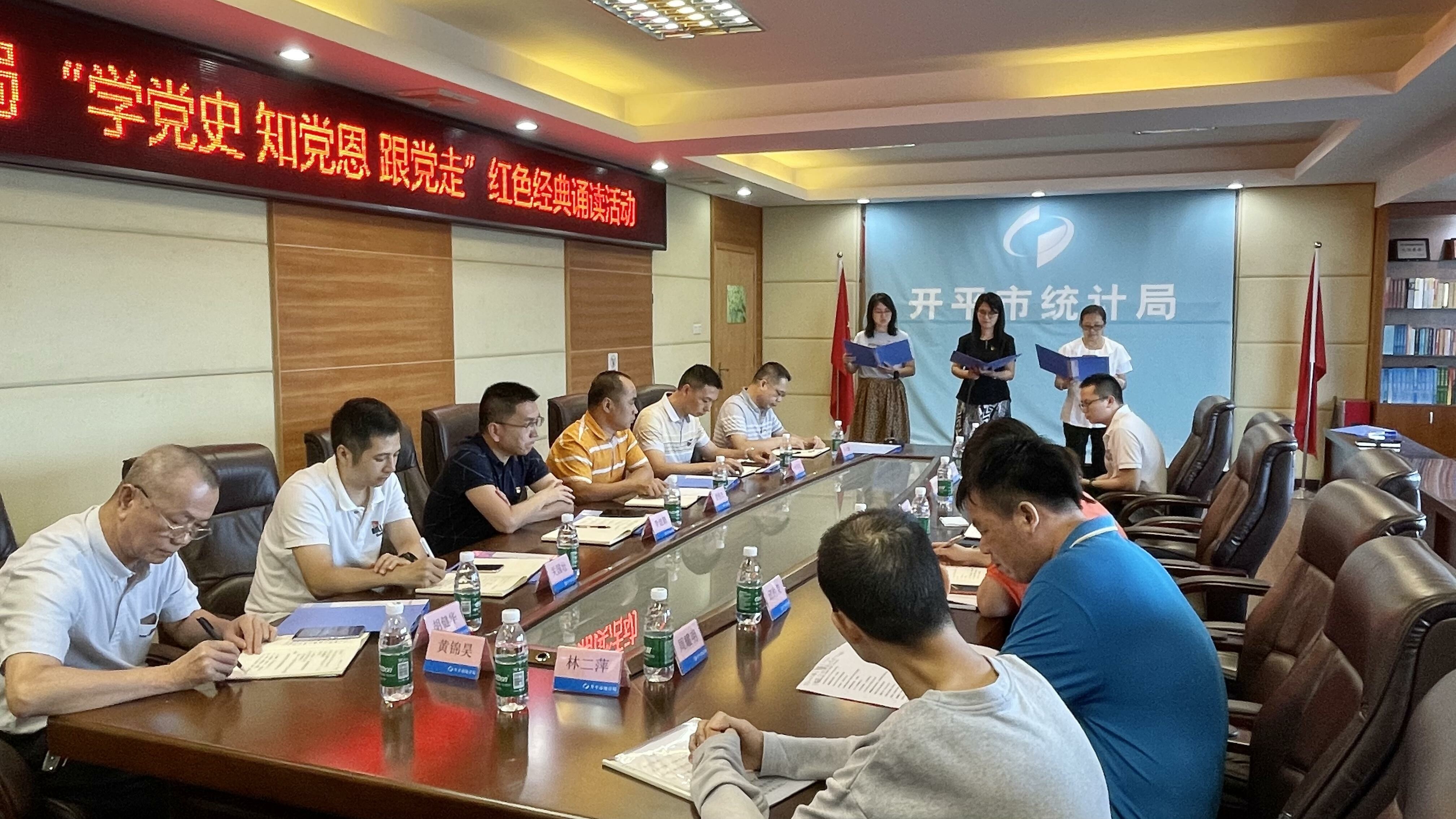 知黨恩 跟黨走 紅色經(jīng)典誦讀”主題黨日活動。 活動以“朗讀者”的形式開展。局科級以上黨員領(lǐng)導(dǎo)干部以一首鏗鏘有力的《我驕傲,我是中國人》集體誦讀拉開了活動的帷幕。隨后,黨員同志、入黨積極分子分別朗誦了《紅船,從南湖起航》、《黨的歷史永遠(yuǎn)輝煌》、《我愛這土地》、《我的祖國》等紅色經(jīng)典作品。一篇篇經(jīng)典的文章,展現(xiàn)出建黨百年的光輝成就;一段段激情澎湃的朗誦,充分表達(dá)了大家對黨、對祖國的無限熱愛,更彰顯了統(tǒng)計人“永遠(yuǎn)跟黨走”的堅定信心。 本次紅色經(jīng)典誦讀活動引起了局全體黨員干部強(qiáng)烈的情感共鳴。大家表示備受感動與鼓舞,不僅增強(qiáng)了民族自信心和自豪感,也強(qiáng)化了作為黨員干部的責(zé)任感和使命感,在今后的工作中,將繼續(xù)守初心、跟黨走,始終堅持以習(xí)近平新時代中國特色社會主義思想為統(tǒng)領(lǐng),加強(qiáng)黨史學(xué)習(xí)教育,進(jìn)一步增強(qiáng)黨性修養(yǎng),充分發(fā)揮黨員干部的發(fā)揮先鋒模范帶頭作用,為統(tǒng)計事業(yè)發(fā)展奉獻(xiàn)自己的智慧和力量。市統(tǒng)計局黨支部開展“學(xué)黨史 知黨恩 跟黨走 紅色經(jīng)典誦讀”主題黨日活動