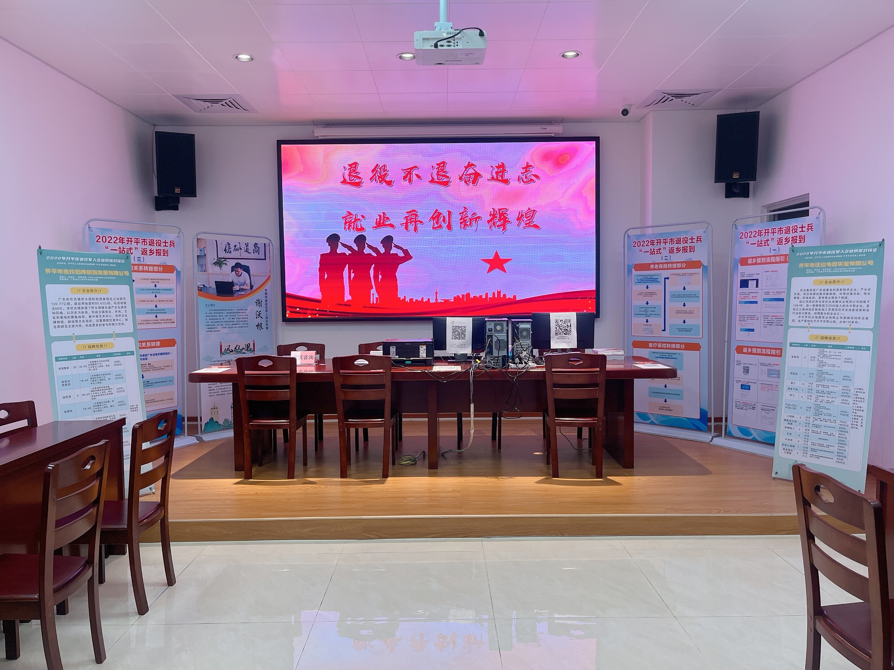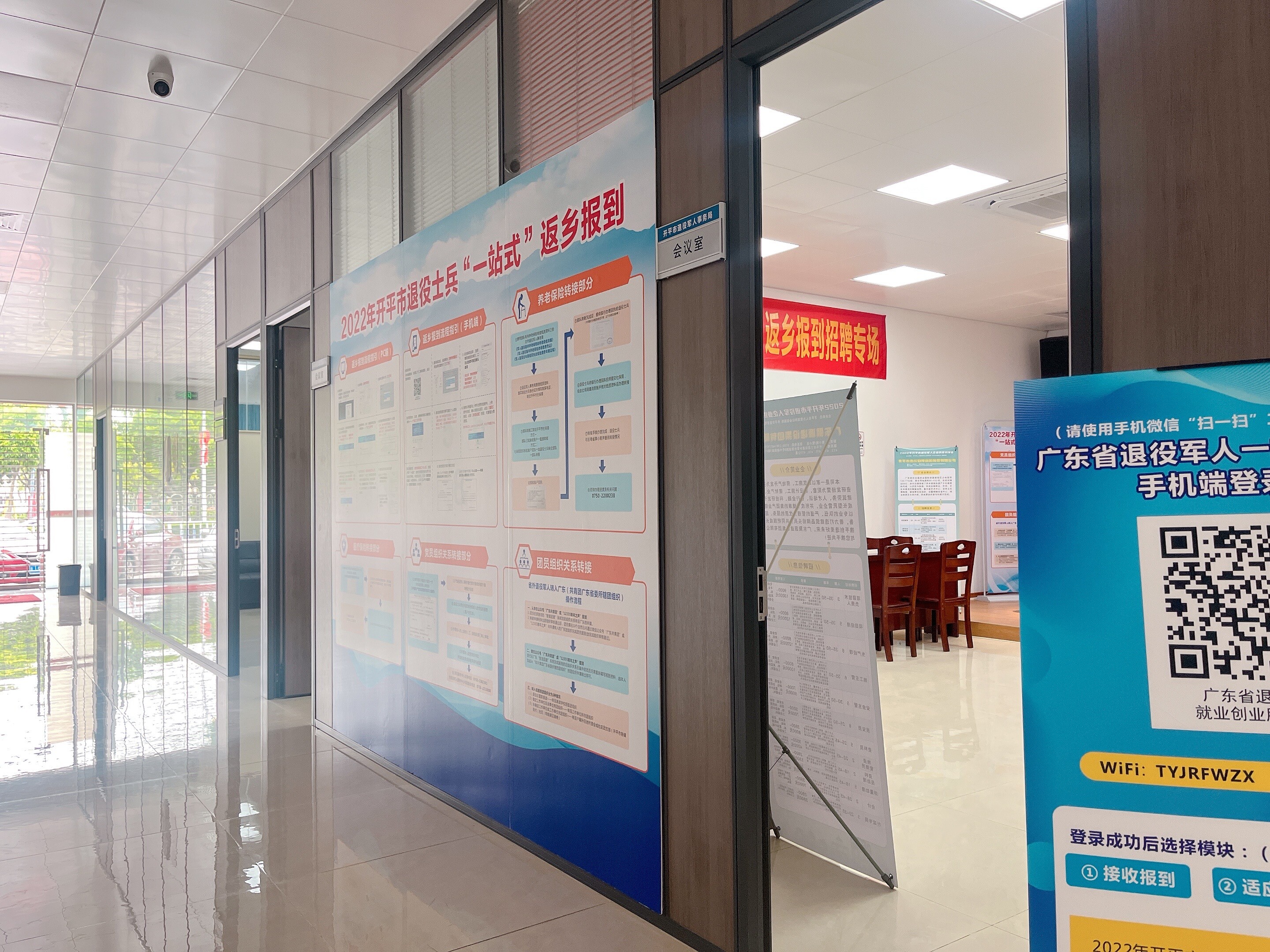 一站式報到模塊:為方便退役軍人及時返鄉(xiāng)報到,開平市退役軍人事務局圍繞“一站式服務”主題,以“最多跑一次”改革為引領,通過整合行政資源,加強數(shù)據(jù)共享等方式,為2022年退役士兵提供更具精準化、更具人性化的“一站式”服務。本次主會場的“一站式報到模塊”成功建立退役士兵返鄉(xiāng)報到七大事項聯(lián)辦機制,通過一門受理、 并聯(lián)辦理、高效辦結等方式,實現(xiàn)接收報到、落戶、黨/團員組織關系轉接、養(yǎng)老/醫(yī)療保險關系轉接、預備役登記、就業(yè)培訓等手續(xù)辦理無縫銜接,用最貼心服務解決“最可愛的人”返鄉(xiāng)“最先一公里”問題。