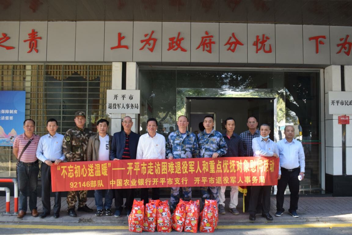 在春節(jié)即將到來之際,開平市退役軍人事務(wù)局聯(lián)合駐地部隊發(fā)動熱心企業(yè)、社會團體開展“不忘初心送溫暖”春節(jié)走訪慰問活動,重點走訪慰問困難退役軍人、重點優(yōu)撫對象和歷屆最美退役軍人,進一步鞏固軍民魚水之情,營造擁軍優(yōu)屬、軍民融合、崇尚軍人的良好氛圍。