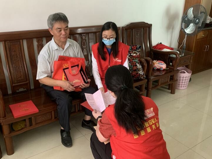 向功臣送上建黨100周年定制筆記本 向功臣講解廣東省應(yīng)急救助政策