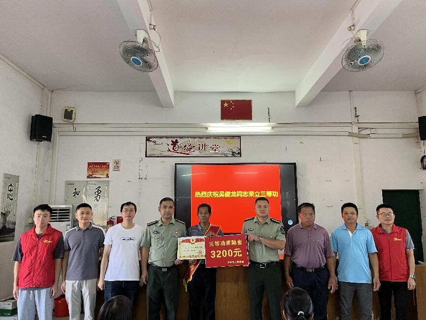 7月7日,市人武部、市退役軍人事務(wù)局和金雞鎮(zhèn)政府共同開展“為立功軍人家屬送喜報(bào)”活動(dòng),給軍人家屬送去了立功受獎(jiǎng)喜報(bào)和獎(jiǎng)勵(lì)金,對(duì)吳健龍同志在部隊(duì)取得的榮譽(yù)表示祝賀。