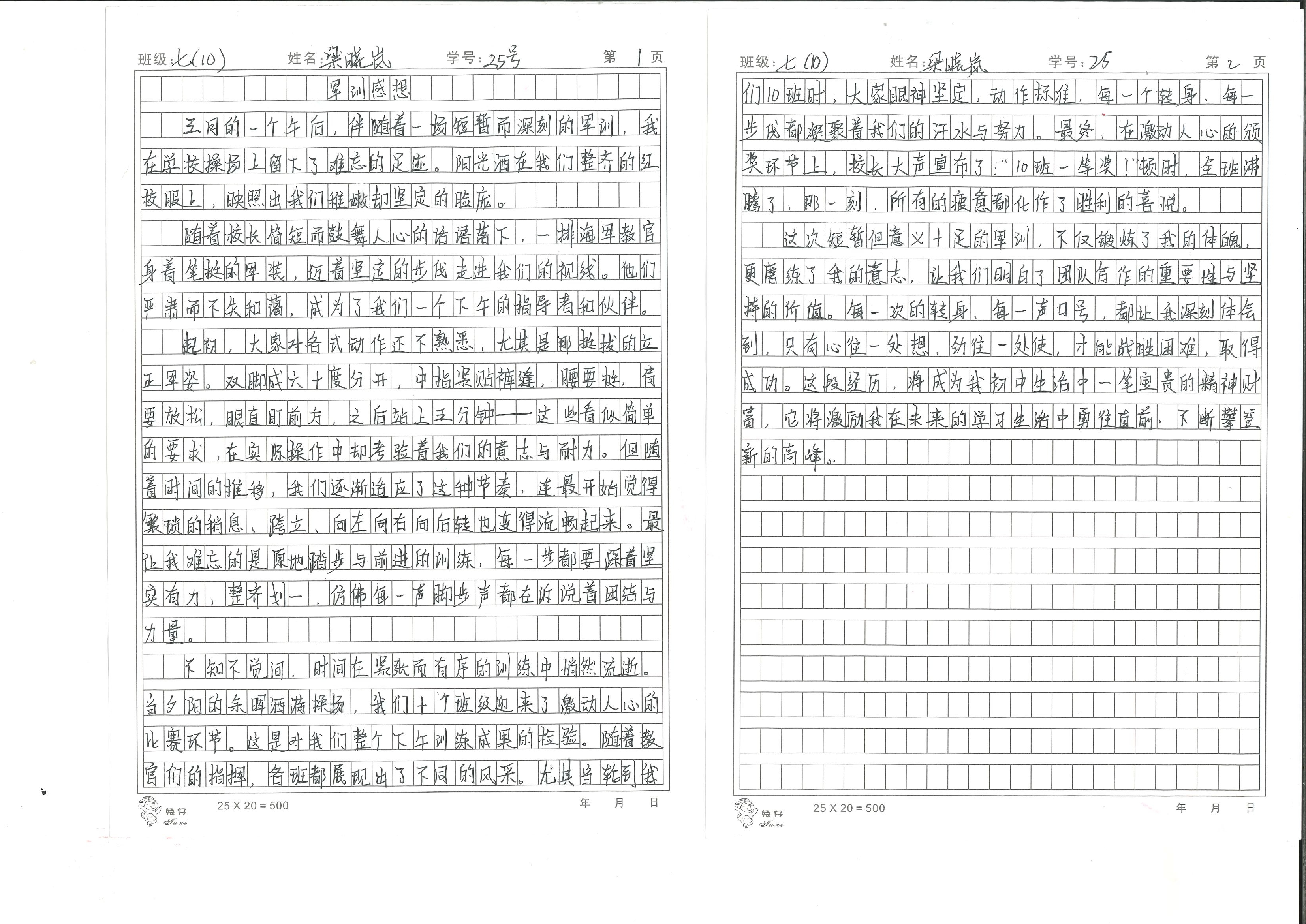 軍訓結(jié)束后,學生們將此次經(jīng)歷轉(zhuǎn)化為筆下的動人文字。一篇篇飽含真情實感的作文,生動地描繪了軍訓的艱辛與收獲,表達了對軍人的敬佩以及自身在活動中的成長與感悟。
