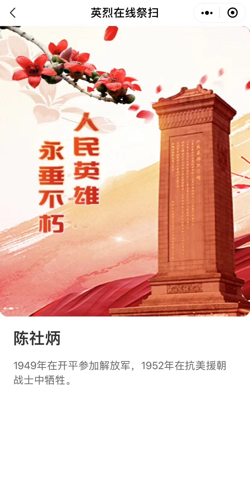 如此完成線上祭拜,緬懷英烈,學(xué)習(xí)英烈精神,表達(dá)我們對(duì)英烈們的崇高敬意!