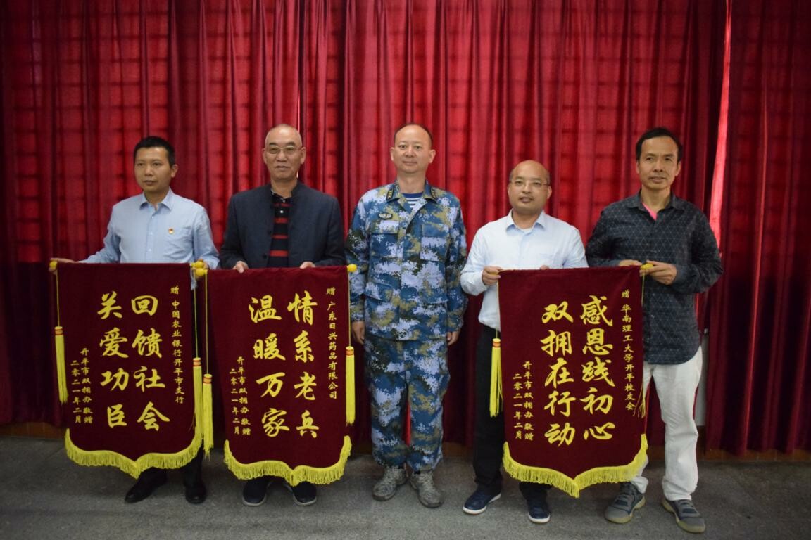 此次活動(dòng)得到中國(guó)農(nóng)業(yè)銀行開平支行、廣東日興藥品有限公司、華南理工大學(xué)開平校友會(huì)等熱心企業(yè)、團(tuán)體的大力支持。開平市雙擁辦為駐地部隊(duì)、企業(yè)和社會(huì)團(tuán)體送上錦旗。
