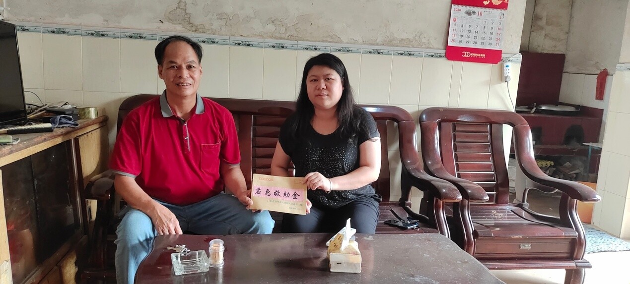 大沙鎮(zhèn)退役軍人服務(wù)站站長為黃某家屬送上應(yīng)急救助金