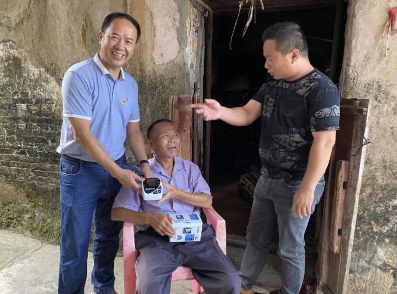 ▲為禾眠村林維健送上血壓計(jì)