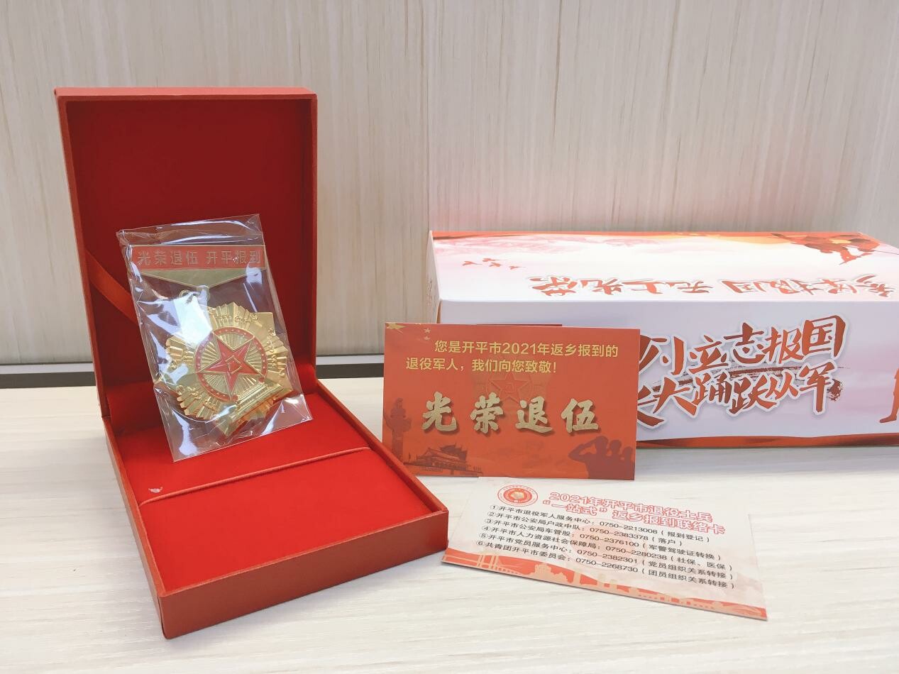 二、“用情”溫暖每顆軍心。從軍報(bào)國(guó)得尊崇,解甲歸田受尊重。市退役軍人事務(wù)局為每一位返鄉(xiāng)退役士兵準(zhǔn)備了一份報(bào)到紀(jì)念禮品。軍味設(shè)計(jì)的金屬徽章象征著部隊(duì)里的崢嶸歲月,而聯(lián)絡(luò)卡上的每一條聯(lián)絡(luò)專線將為每位榮歸故里的退役軍人提供家鄉(xiāng)最貼心的“一對(duì)一”跟蹤服務(wù)。這份紀(jì)念品將黨和政府的溫暖一同送到了每一位回家的退役士兵手中,也用軍民魚水情溫暖每一顆歸來(lái)的“軍心”。