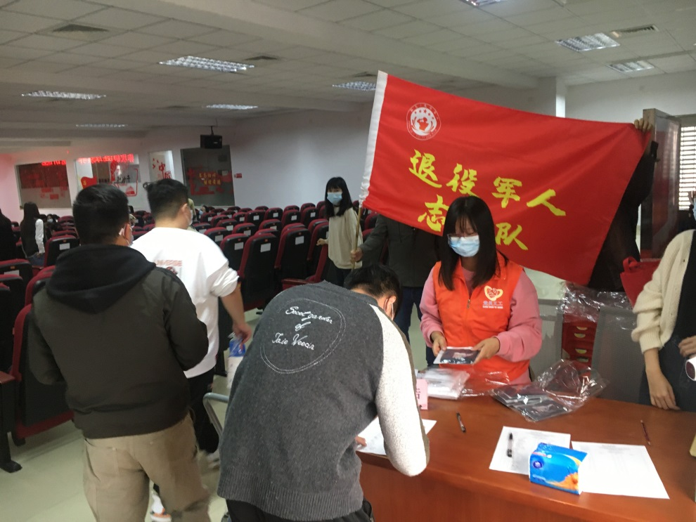 活動現(xiàn)場,身穿橙色馬甲的退役軍人志愿者們各負(fù)其責(zé),主動承擔(dān)分流參會人員,按流程登記簽到信息,測量體溫、查看粵康碼、維持秩序、座位引導(dǎo)等工作。