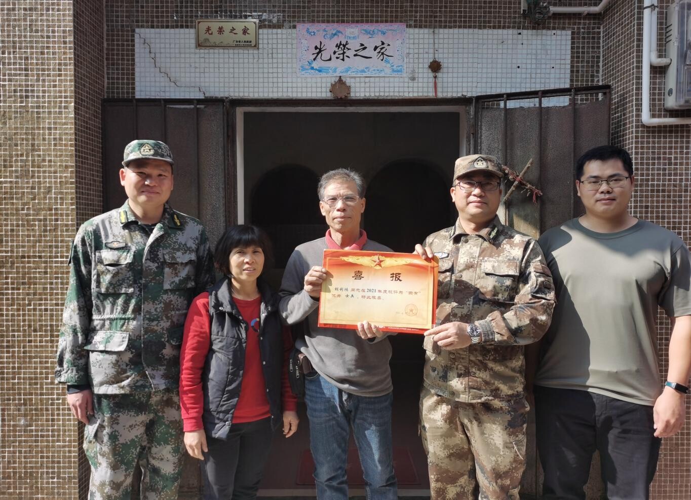 喜報送上門,尊崇暖軍心。一張小小的立功喜報,承載著軍人的榮譽,凝聚也飽含著軍屬的大力支持和默默奉獻。在胡利鴻家中,鎮(zhèn)領(lǐng)導(dǎo)向胡利鴻及家人表示祝賀,并與他們進行親切交談,詳細了解軍人在部隊服役的情況和家屬的生活狀況,感謝家屬為國家和部隊培養(yǎng)了優(yōu)秀人才,鼓勵胡利鴻堅定信念,在部隊積極進取、奮勇前進、再創(chuàng)佳績,并用自己在部隊鍛煉成才的親身經(jīng)歷積極動員身邊的適齡青年參軍報國,不負韶華,為軍隊和國防事業(yè)作貢獻。