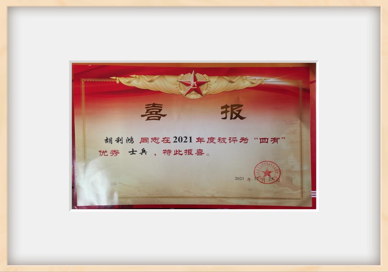 據(jù)悉,2020年,胡利鴻積極響應(yīng)國家號召應(yīng)征入伍,在部隊期間,他刻苦訓(xùn)練、努力鉆研,憑著不怕艱苦、默默奉獻的精神,不斷學(xué)習(xí)業(yè)務(wù)技能,提高政治覺悟,發(fā)揮了先鋒模范作用。2021年因工作表現(xiàn)突出,被部隊授予“四有”優(yōu)秀士兵榮譽稱號。