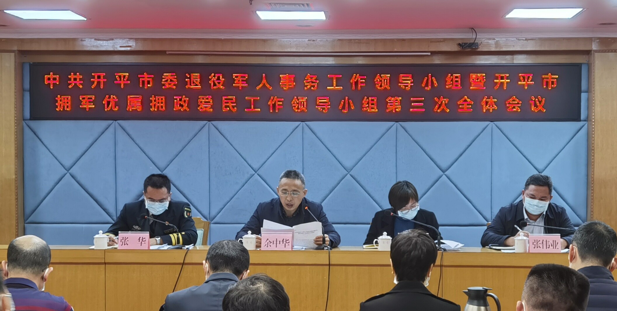 1月21日上午,開(kāi)平市召開(kāi)了中共開(kāi)平市委退役軍人事務(wù)工作領(lǐng)導(dǎo)小組暨開(kāi)平市擁軍優(yōu)屬擁政愛(ài)民工作領(lǐng)導(dǎo)小組第三次全體會(huì)議,深入學(xué)習(xí)貫徹習(xí)近平總書(shū)記關(guān)于退役軍人工作的重要論述和重要指示精神,傳達(dá)中央退役軍人事務(wù)工作領(lǐng)導(dǎo)小組、省委退役軍人事務(wù)工作領(lǐng)導(dǎo)小組及江門(mén)市委退役軍人事務(wù)工作領(lǐng)導(dǎo)小組有關(guān)會(huì)議及文件精神,總結(jié)2021年全市退役軍人工作和雙擁工作,審議有關(guān)文件,研究部署當(dāng)前及今后一個(gè)時(shí)期全市退役軍人工作。市委書(shū)記、市委退役軍人事務(wù)工作領(lǐng)導(dǎo)小組組長(zhǎng)余中華同志發(fā)表講話(huà)。