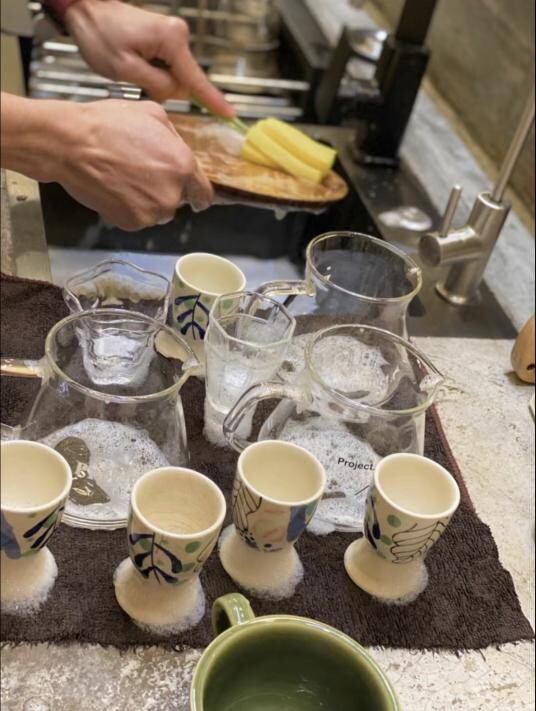 對(duì)于Project A,啡友們除了“簡(jiǎn)約明亮,富有設(shè)計(jì)感”、“氛圍很好,咖啡的香氣很棒”之外,往往還會(huì)加一句“整潔干凈”,這也是吳偉雄以細(xì)心制作咖啡的體現(xiàn)。作為一店之主,他對(duì)店內(nèi)衛(wèi)生的把控可以說(shuō)是有點(diǎn)“偏執(zhí)”,這也和部隊(duì)里的衛(wèi)生要求和習(xí)慣給予他的影響息息相關(guān)。在制作咖啡過(guò)程中,吳偉雄會(huì)根據(jù)客流量對(duì)儀器、餐具進(jìn)行清洗和整理,雖然清潔會(huì)耗費(fèi)較長(zhǎng)的時(shí)間,但為了一杯品質(zhì)上乘的咖啡,即使是客流量高峰的繁忙時(shí)段,他也絕對(duì)不肯妥協(xié),總會(huì)細(xì)致地將工作臺(tái)上的每個(gè)角落都擦得干干凈凈,保證每一口咖啡的健康和安全。