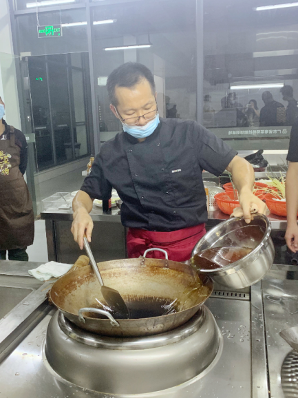 培訓(xùn)課上,主講教師不但手把手教授刀工、鍋工、火候、配料等烹調(diào)技能,還就食材的選擇、調(diào)料的合理搭配等作詳細(xì)介紹,最后現(xiàn)場(chǎng)為學(xué)員們演示了菜品的做法。參訓(xùn)學(xué)員們熱情高漲,認(rèn)真聽、仔細(xì)記、反復(fù)練,不但用手機(jī)記錄制作流程,還按照講師的提示輪流進(jìn)行實(shí)操練習(xí),師生間互動(dòng)不斷,課堂氣氛生動(dòng)而熱烈。