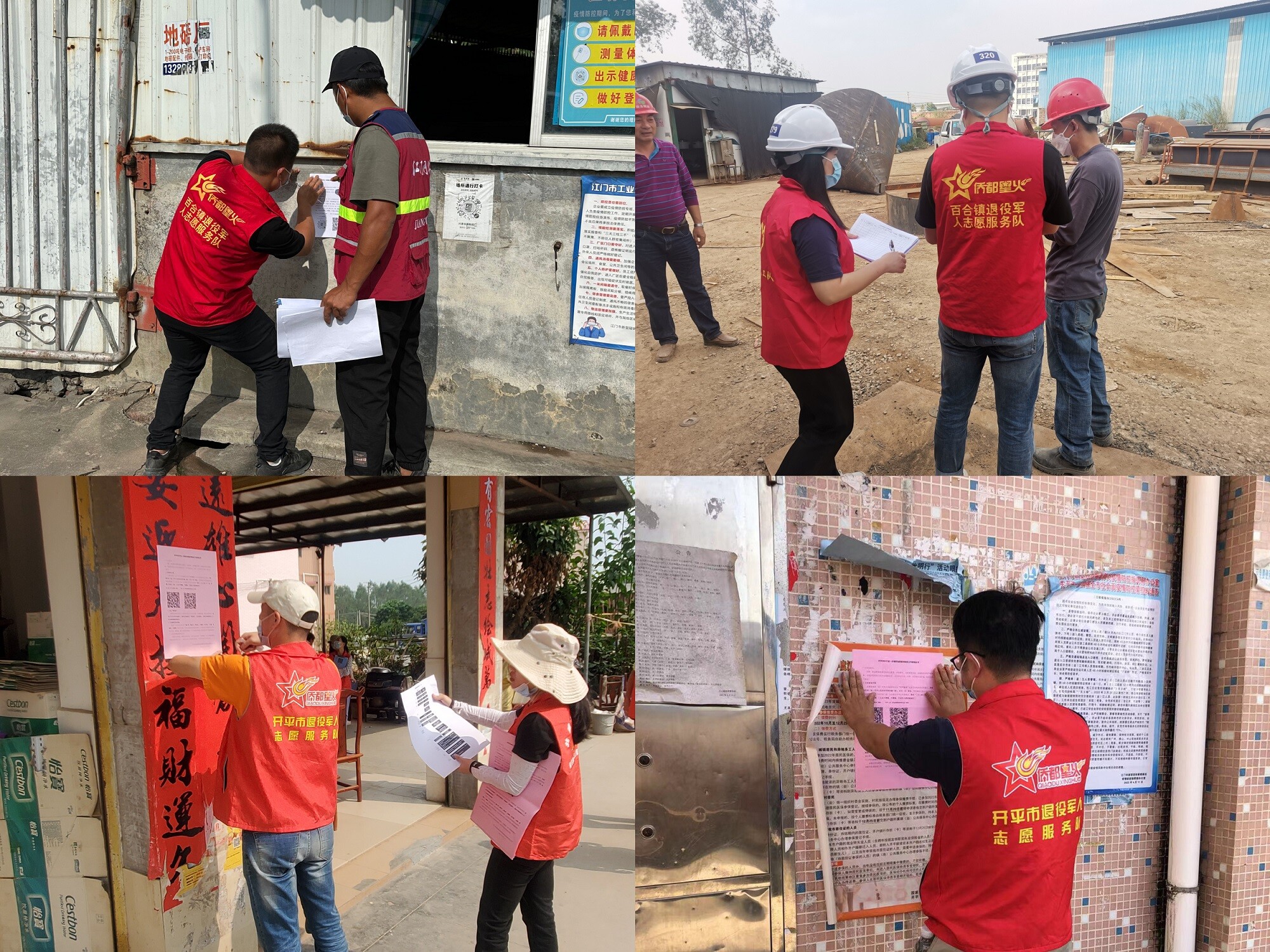 根據(jù)疫情防控工作需要,11月18日到11月20日,開(kāi)平市退役軍人事務(wù)局黨員義工隊(duì)、僑都星火開(kāi)平市退役軍人志愿服務(wù)隊(duì)及15個(gè)鎮(zhèn)街分隊(duì)紛紛下沉一線,化身網(wǎng)格員到各村(社區(qū))協(xié)助開(kāi)展涉疫風(fēng)險(xiǎn)人員網(wǎng)格排查工作。