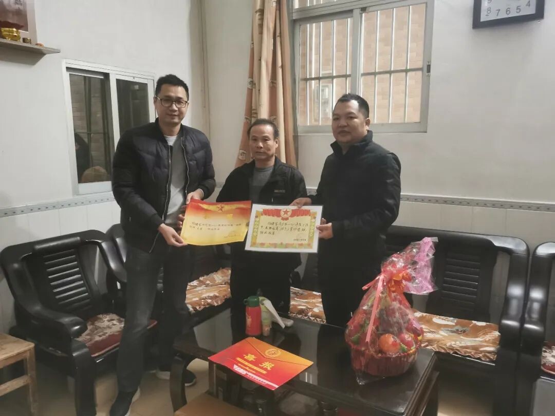 張卓繁(右一)為立功軍人家庭上門送喜報