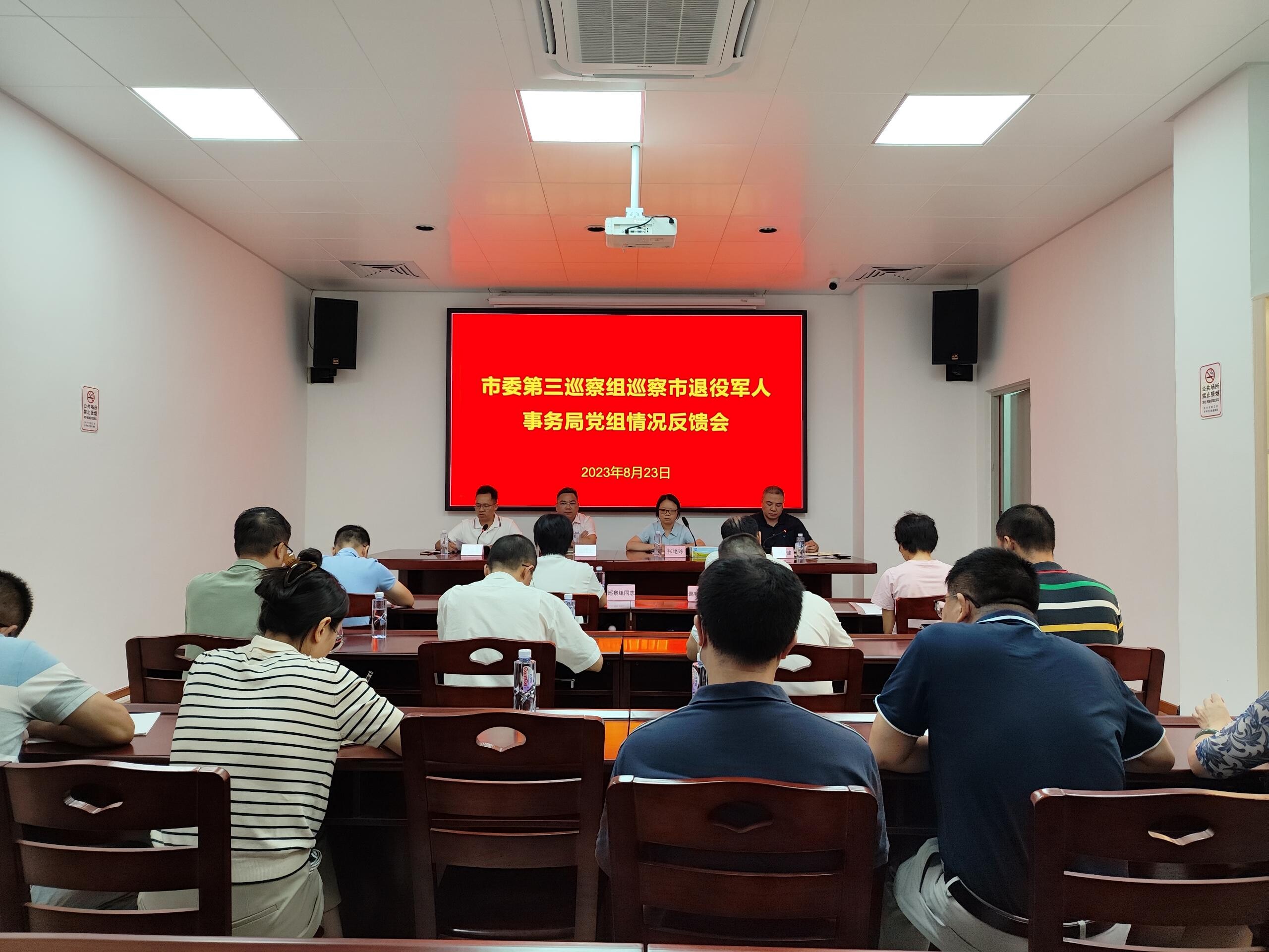 市紀委副書記、市監(jiān)委副主任、市委巡察工作領(lǐng)導(dǎo)小組成員張艷玲,市委第三巡察組副組長及有關(guān)同志,市委巡察辦、市紀委監(jiān)委第四紀檢監(jiān)察室、市紀委監(jiān)委駐市人社局紀檢監(jiān)察組、市委組織部有關(guān)同志,市退役軍人事務(wù)局黨組領(lǐng)導(dǎo)班子成員出席會議;市退役軍人事務(wù)局中層及以上干部、所屬事業(yè)單位主要負責人列席會議。