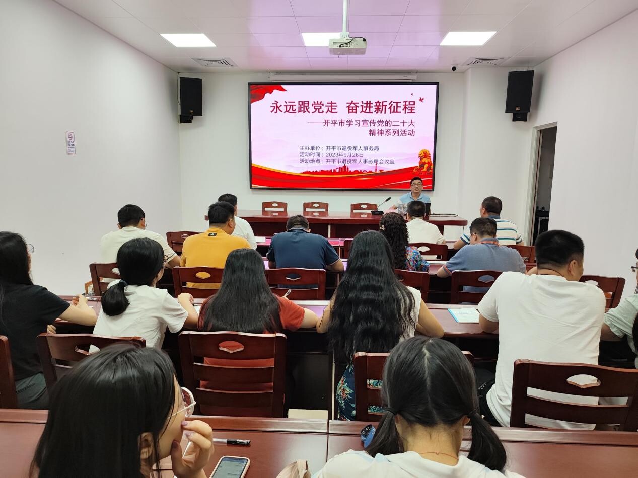 為全面貫徹落實黨的二十大精神,推動黨的二十大精神學(xué)習(xí)走深走實,加強成就宣傳和形勢政策教育,9月26日,開平市退役軍人事務(wù)局邀請市委黨的二十大精神宣講團成員林偉龍講授專題黨課,局機關(guān)及下屬事業(yè)單位全體黨員干部職工參加學(xué)習(xí)。