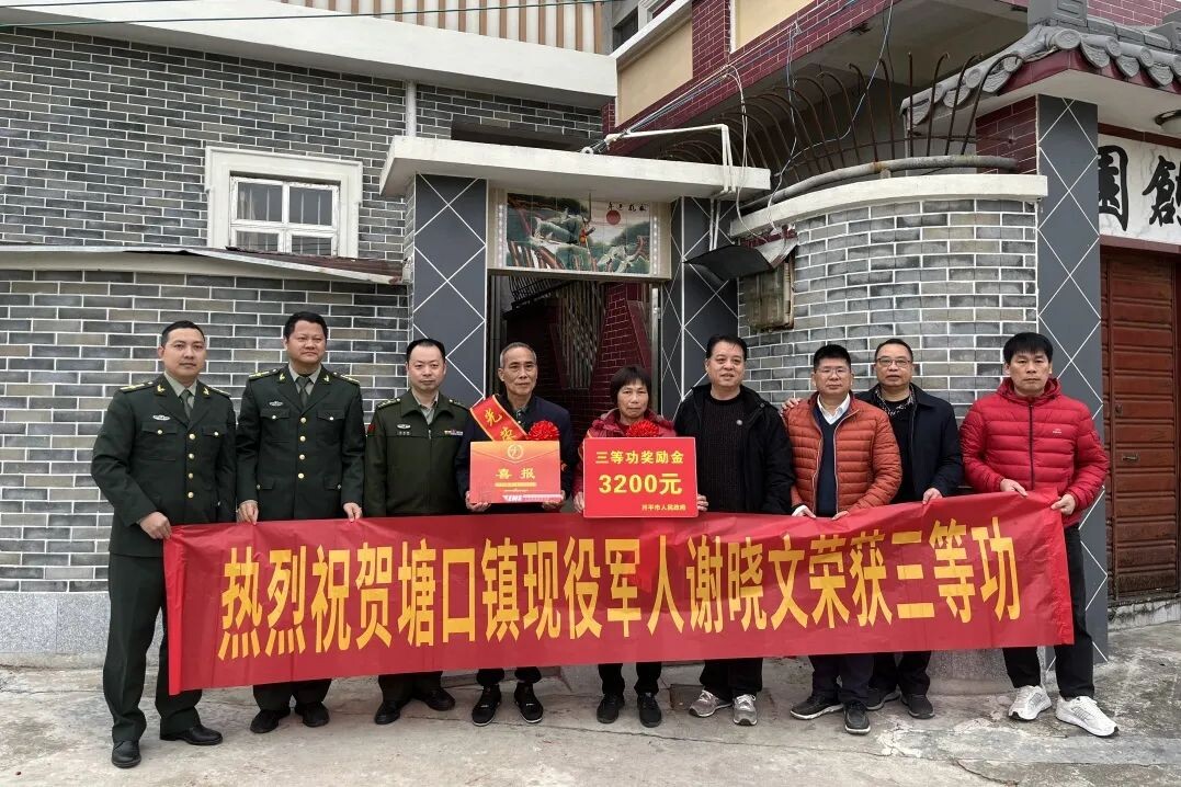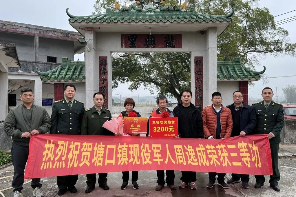 為弘揚(yáng)擁軍優(yōu)屬、擁政愛民的光榮傳統(tǒng),激發(fā)部隊(duì)士兵安心服役、建功軍營、獻(xiàn)身國防的政治熱情,近日,開平市退役軍人事務(wù)局、市人民武裝部和塘口鎮(zhèn)一行組成慰問團(tuán),分別到潭溪鳳社村和升平龍興村,為榮立三等功的現(xiàn)役軍人謝曉文和周逸成的家屬送去喜報(bào)。