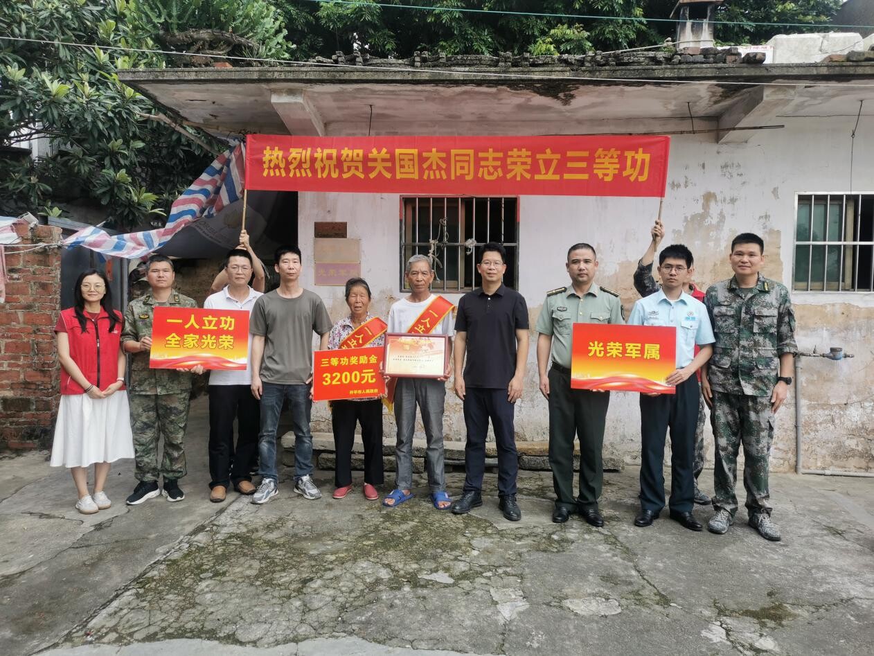 由百合鎮(zhèn)黨委、政府主要領(lǐng)導(dǎo),開平市退役軍人事務(wù)局、開平市人武部分管領(lǐng)導(dǎo)組成慰問組為百合鎮(zhèn)榮獲“三等功”的現(xiàn)役軍人家屬送上立功喜報(bào),傳達(dá)黨和政府對(duì)他們的深切關(guān)懷,把榮譽(yù)與關(guān)心送到軍人家中,營造“一人參軍、全家光榮,一人立功、家鄉(xiāng)光榮”的良好社會(huì)氛圍。