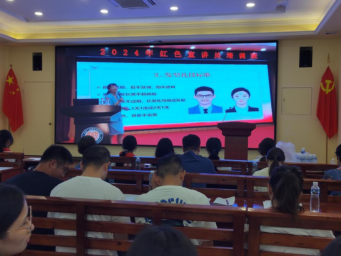 活動中,周文雍陳鐵軍烈士紀(jì)念館講解員還結(jié)合自身講解經(jīng)驗,從講解定義、講解方法、講解禮儀等方面展開,詳細(xì)介紹了講解員應(yīng)該如何發(fā)聲、吐字歸音、因人施講以及站姿、手勢、目光、微笑等講解規(guī)范和技巧,幫助各位學(xué)員提高講解水平,并從紅色故事中汲取精神力量,增強(qiáng)褒揚(yáng)工作的責(zé)任感和使命感。