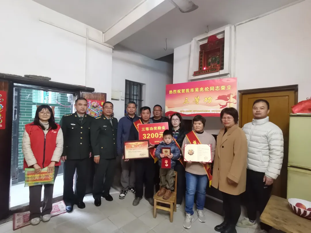 一封喜報傳佳訊,一席關懷暖人心。開平市人武部、市退役軍人事務局、長沙街道辦事處武裝部及退役軍人服務站組隊給榮立三等功的吳兆倫的家屬送去喜報和慰問品。在熱鬧的氛圍中,送喜報隊伍為其家屬佩戴上“光榮家屬”的綬帶,并表示熱烈祝賀。家屬激動地說:“看到孩子在部隊里有所作為,我們感到非常自豪,這是對我們家庭最大的肯定。我們會叮囑孩子在部隊繼續(xù)努力,爭取再立新功,不辜負家鄉(xiāng)人民的厚望?!彼拖矆箨犖榕c家屬親切交談,詳細詢問他們的家庭情況,解讀擁軍優(yōu)屬相關政策,并對家屬為支持國防事業(yè)作出的貢獻表示崇高的敬意和衷心的感謝。