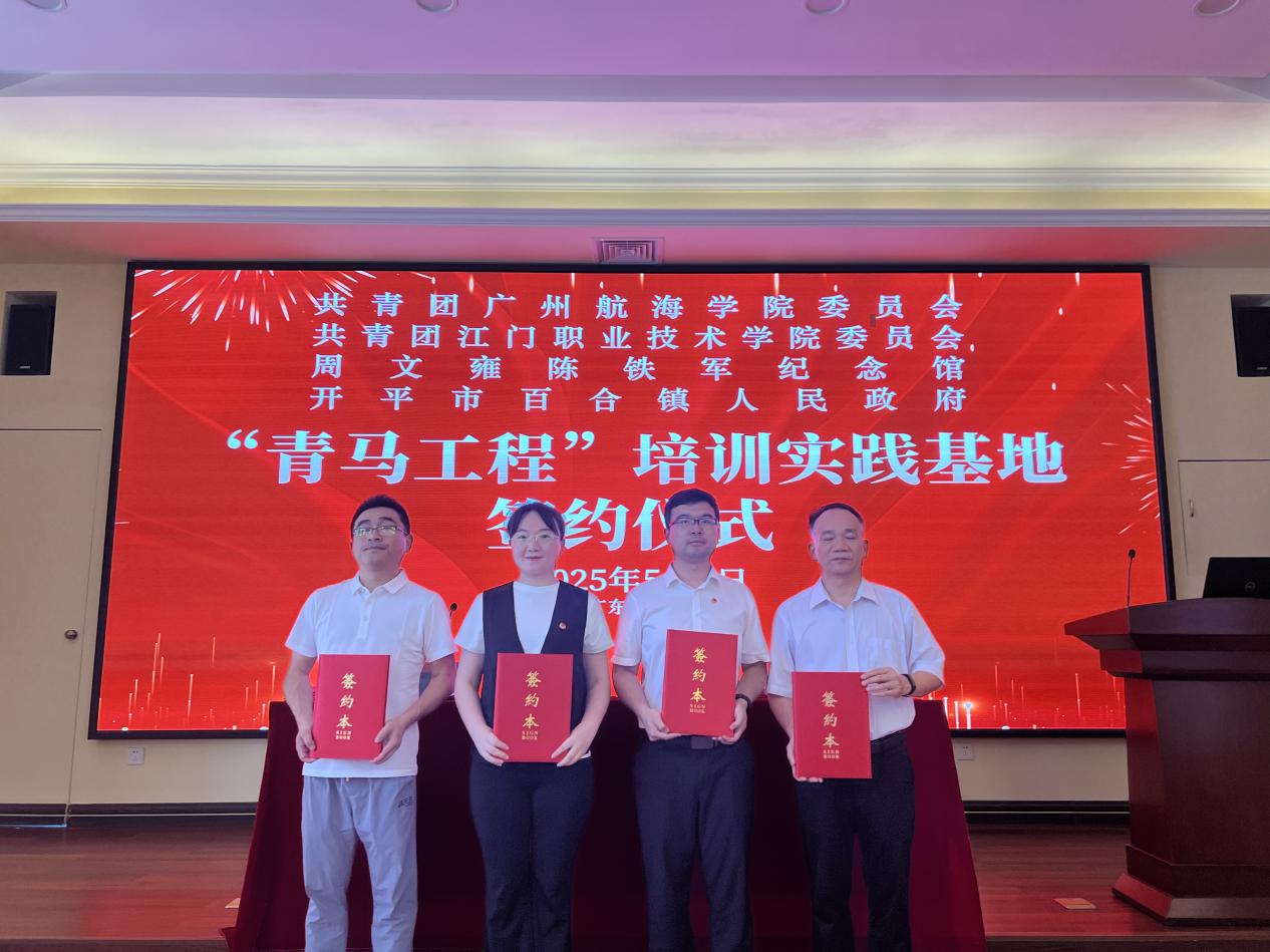 近日,廣州航海學(xué)院、江門(mén)職業(yè)技術(shù)學(xué)院“青馬班”培訓(xùn)實(shí)踐基地在周文雍陳鐵軍烈士紀(jì)念館掛牌。雙方簽訂館校合作協(xié)議,開(kāi)展“青馬”學(xué)員培訓(xùn)講座,參觀展館研習(xí)周文雍夫婦革命事跡。廣州航海學(xué)院黨委副書(shū)記、江門(mén)職業(yè)技術(shù)學(xué)院黨委副書(shū)記、百合鎮(zhèn)分管黨建副書(shū)記、百合鎮(zhèn)“雙百行動(dòng)”分管領(lǐng)導(dǎo)、退役軍人事務(wù)局領(lǐng)導(dǎo)出席。